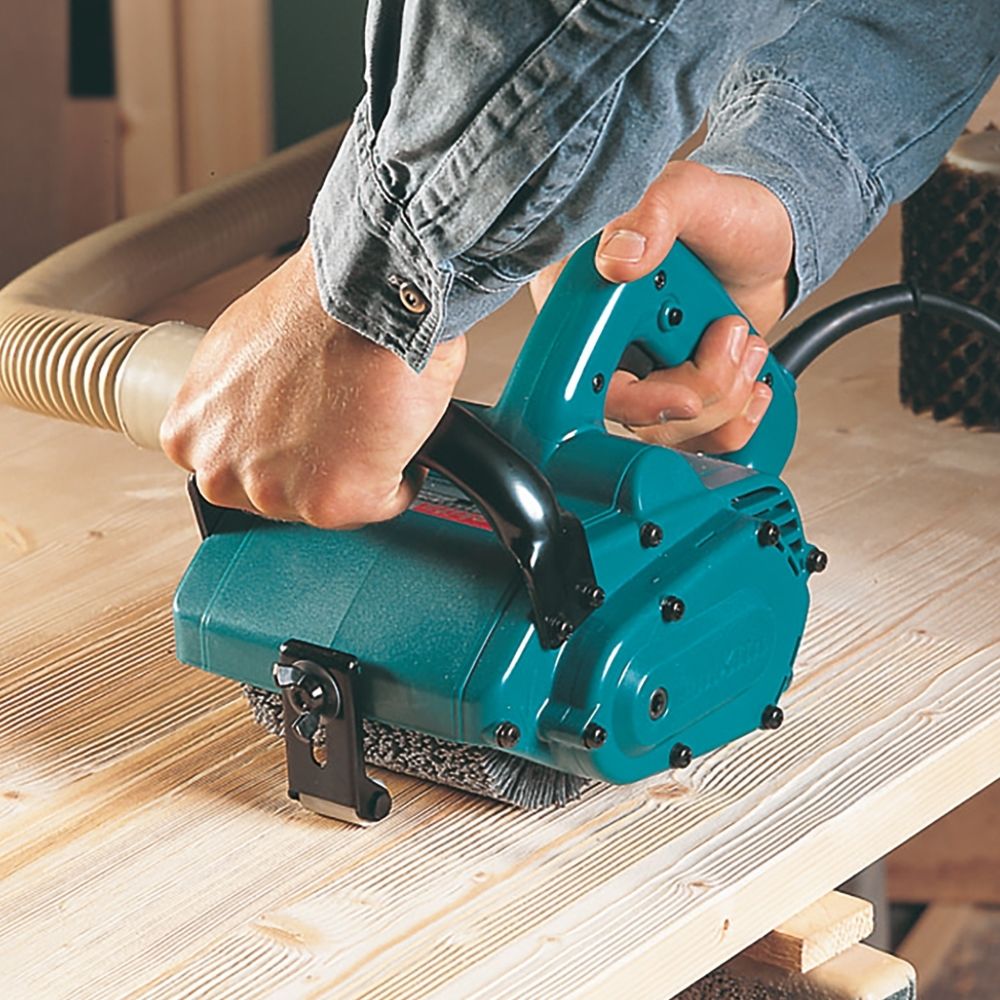 A Lixadeira de Escova Makita 9741 é uma ferramenta robusta e eficiente, projetada para aplicações específicas na remoção de ferrugem, pintura, limpeza de sujeira em superfícies, polimento e limpeza de concreto. Seu rolo frontal ajustável proporciona pressão uniforme na peça de trabalho, garantindo resultados precisos.