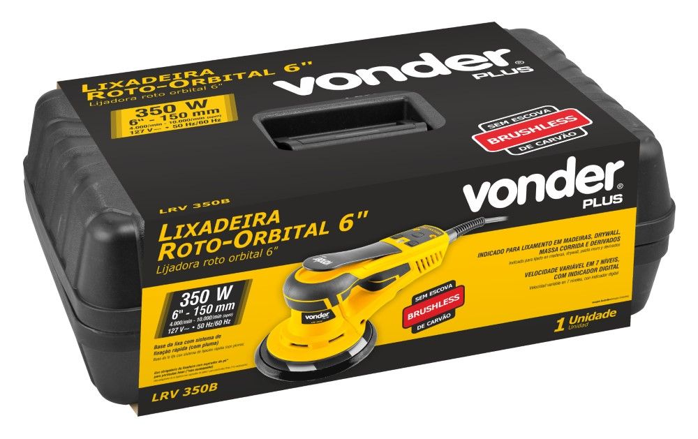 Possui formato ergonômico, proporcionando maior conforto ao operador. Possui velocidade variável em 7 níveis, com indicador digital. Conta ainda com base da lixa com sistema de fixação rápida (com pluma) e excentricidade de 5,0 mm, que garantem agilidade e melhor acabamento nos trabalhos, possui saída para aspirador de pó e acompanha 2 adaptadores e 1 mangueira para conexão no aspirador de pó (não acompanha aspirador). Além disso, possui motor tipo Brushless (sem escova de carvão), mantendo a velocidade constante nas aplicações e garantindo maior durabilidade, resistência e desempenho.