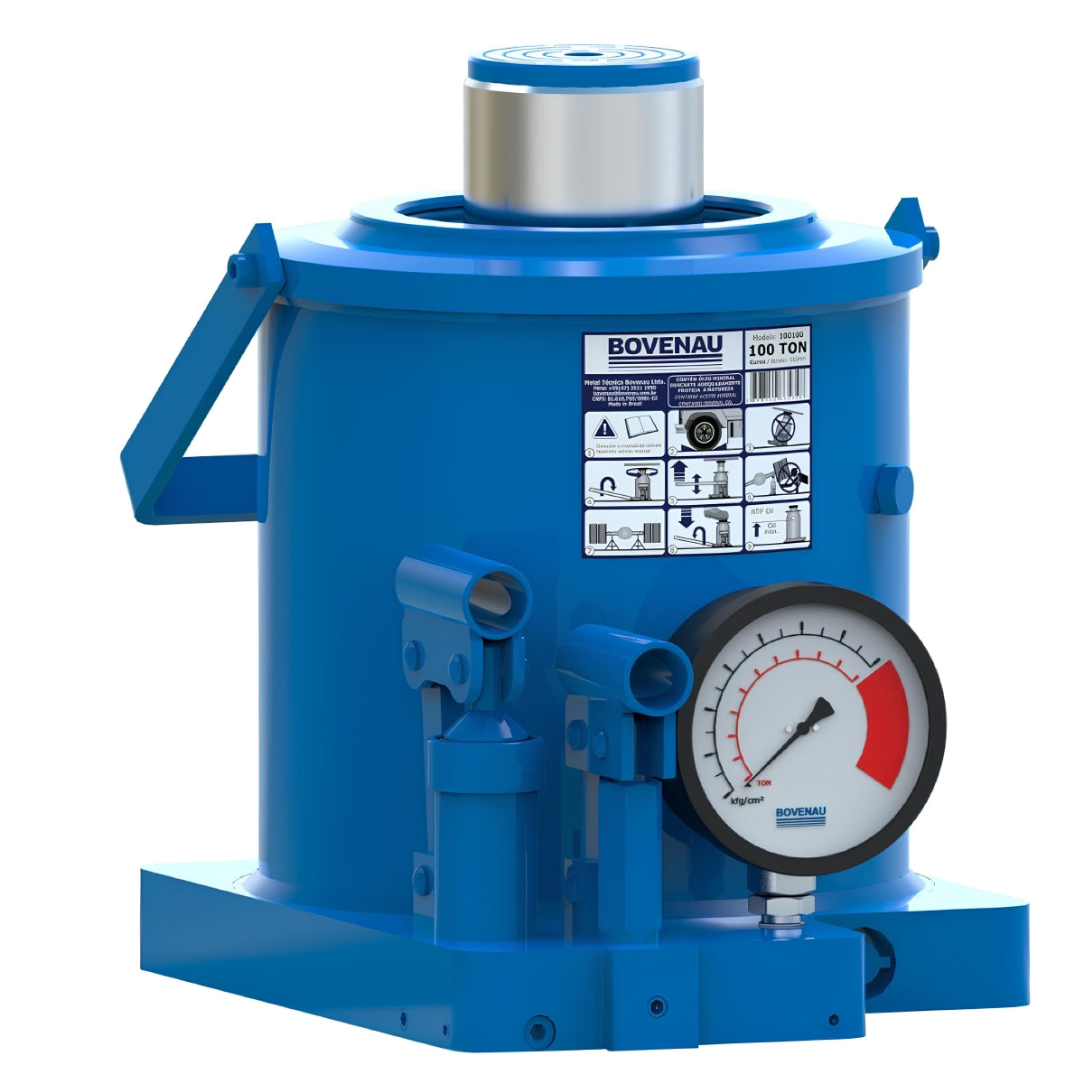 Conteúdo da embalagem: 1 Macaco Garrafa 100 T Hidráulico Com Manômetro MT100 Bovenau