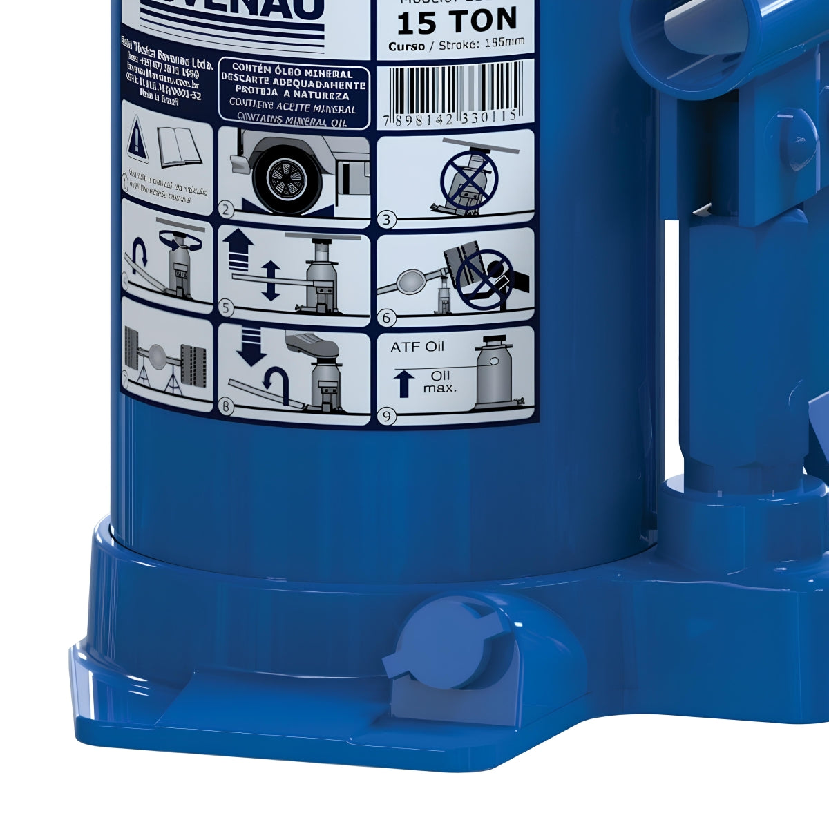 Conteúdo da embalagem: 1 Macaco Garrafa 15 T Hidráulico MT15 Bovenau