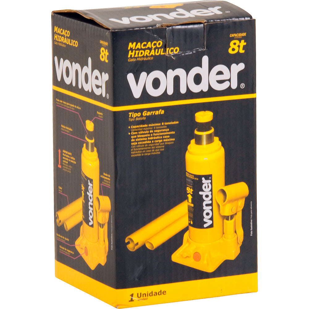 Adquira já o seu Macaco Hidráulico Garrafa 8 Toneladas Vonder e garanta segurança e eficiência na elevação de veículos e cargas pesadas. Não perca a oportunidade de ter um equipamento de alta qualidade e durabilidade em sua oficina ou garagem!