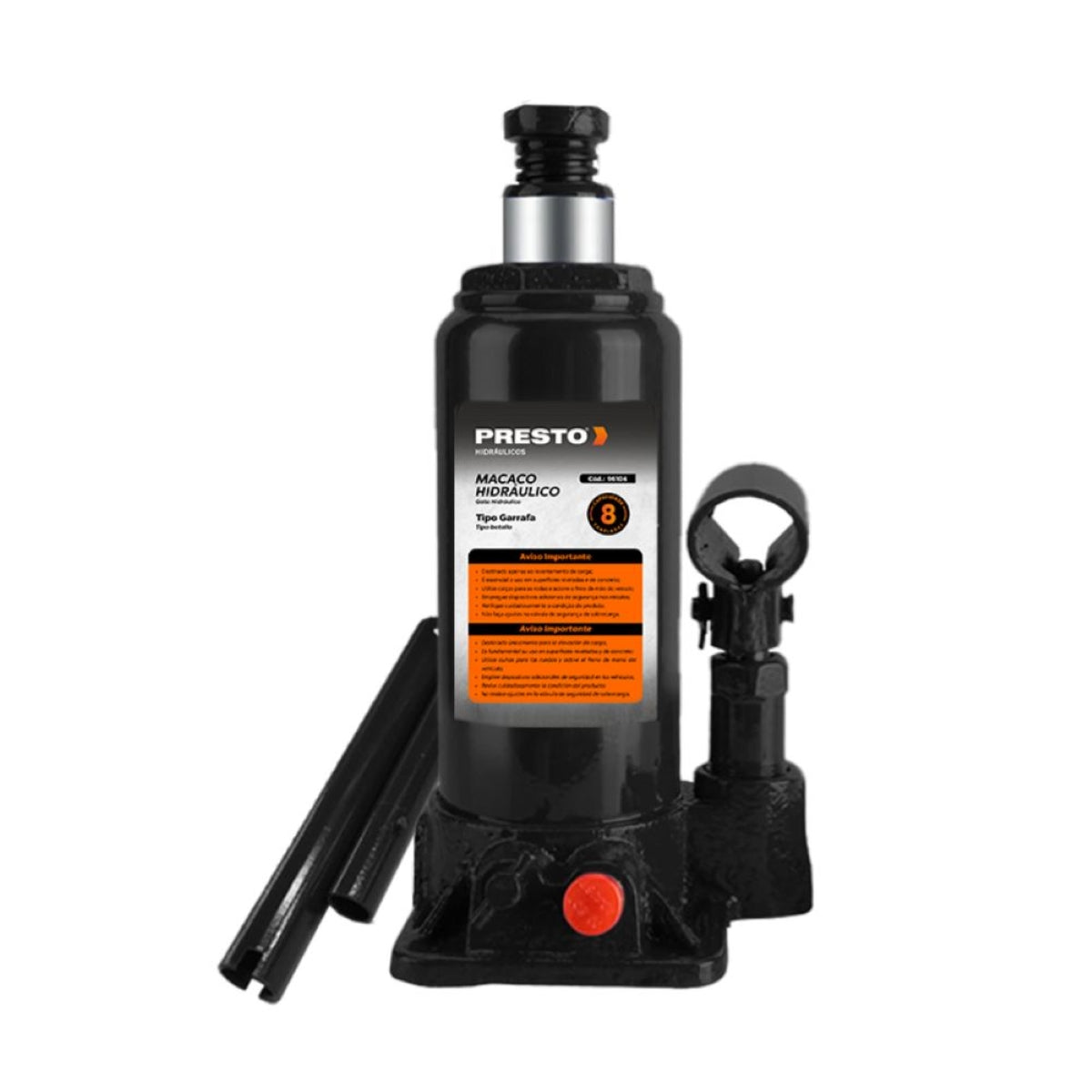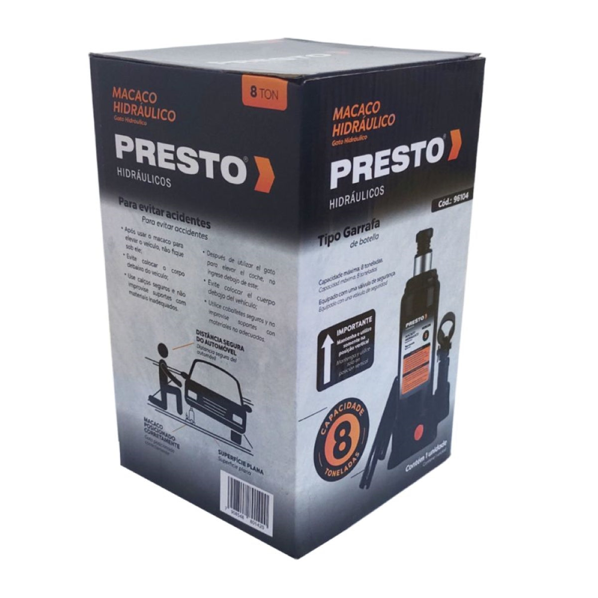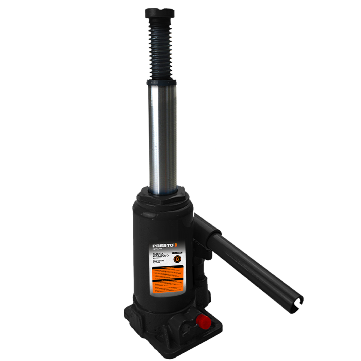 O Macaco Hidráulico Tipo Garrafa 8 toneladas da Presto é ideal para quem precisa levantar veículos com segurança e eficiência. Compacto e robusto, este macaco é essencial para oficinas mecânicas, borracharias e garagens, oferecendo uma solução confiável para diversas aplicações automotivas e industriais.