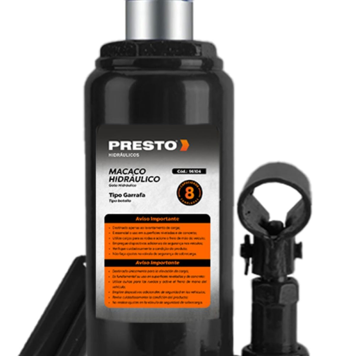 Conteúdo da embalagem: 1 Macaco Hidráulico Garrafa 8 Toneladas Presto