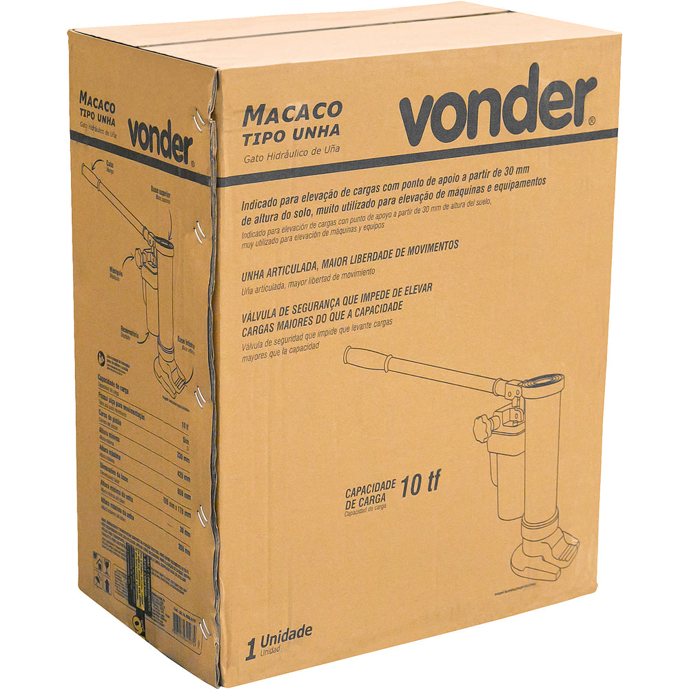 Possui unha articulada que proporciona maior liberdade de movimentos durante a operação. Dependendo da altura da carga a ser elevada, a base superior (topo) do macaco também pode ser usada para elevação, funcionando como um macaco comum. Possui válvula de segurança que impede o usuário de elevar cargas maiores do que a capacidade nominal do macaco.