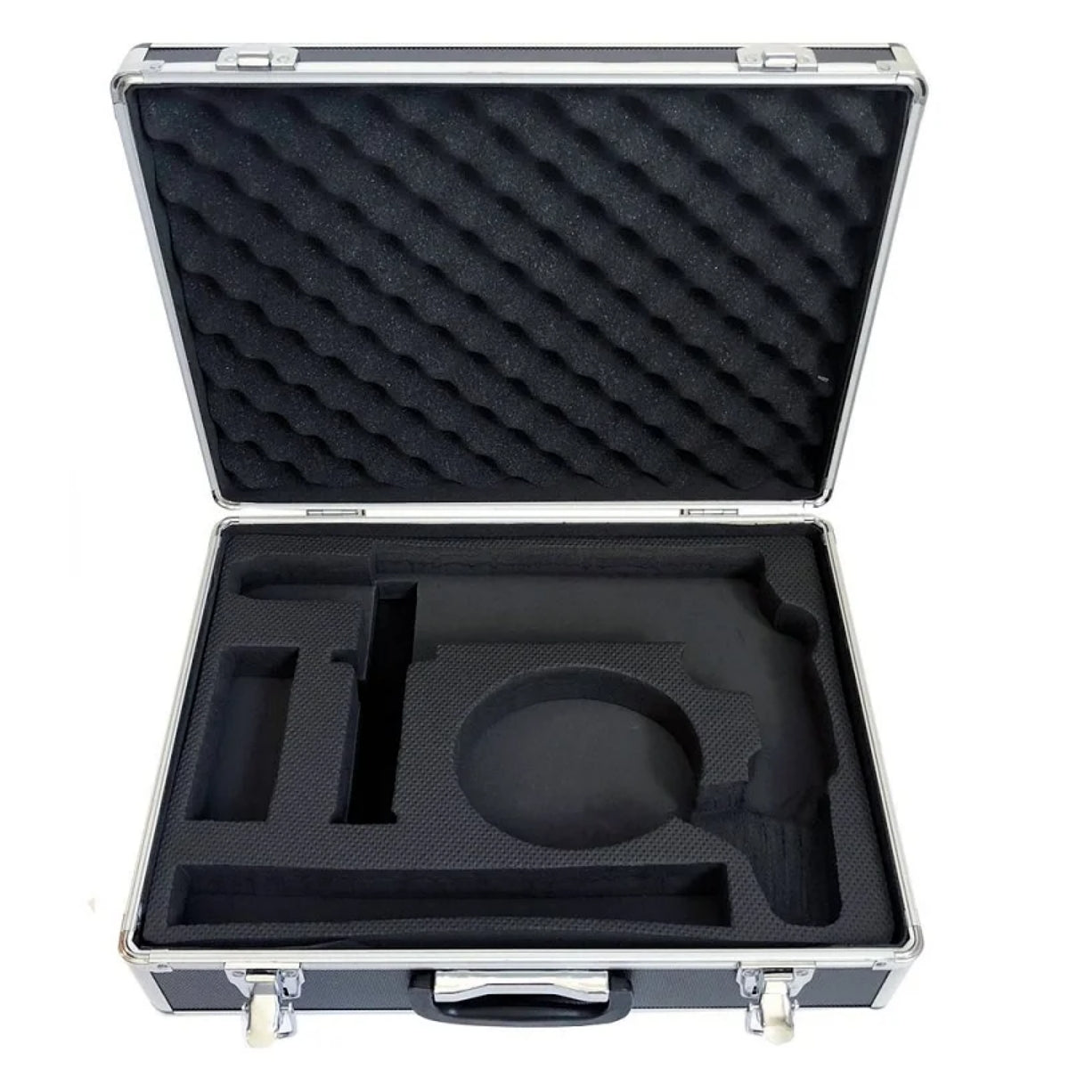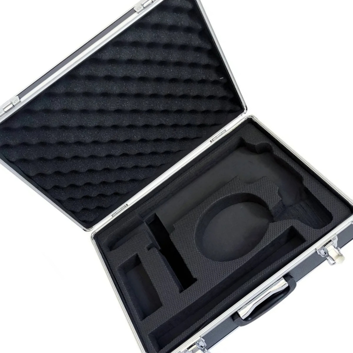 Com dimensões externas de 460 x 330 x 140 mm e internas de 445 x 322 x 123 mm, a maleta proporciona encaixe preciso para os modelos mencionados, graças ao interior com espuma moldada de alta densidade, que absorve vibrações e evita movimentações durante o transporte. A espuma é removível, permitindo o uso da maleta para outras ferramentas elétricas compatíveis com o espaço disponível.