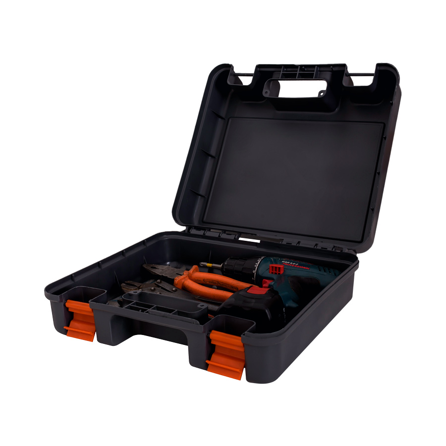 Material Resistente: Construída em plástico de alta qualidade, a maleta oferece resistência a impactos e durabilidade para proteger suas ferramentas contra danos.