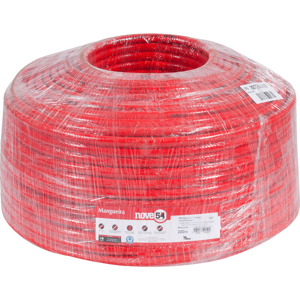 Diâmetro interno da mangueira 1/2" - 12,7 mm Espessura da parede da mangueira: 2,0 mm Cor da mangueira: Vermelha Material da mangueira: PVC Pressão de trabalho da mangueira: 150 lbf/pol²