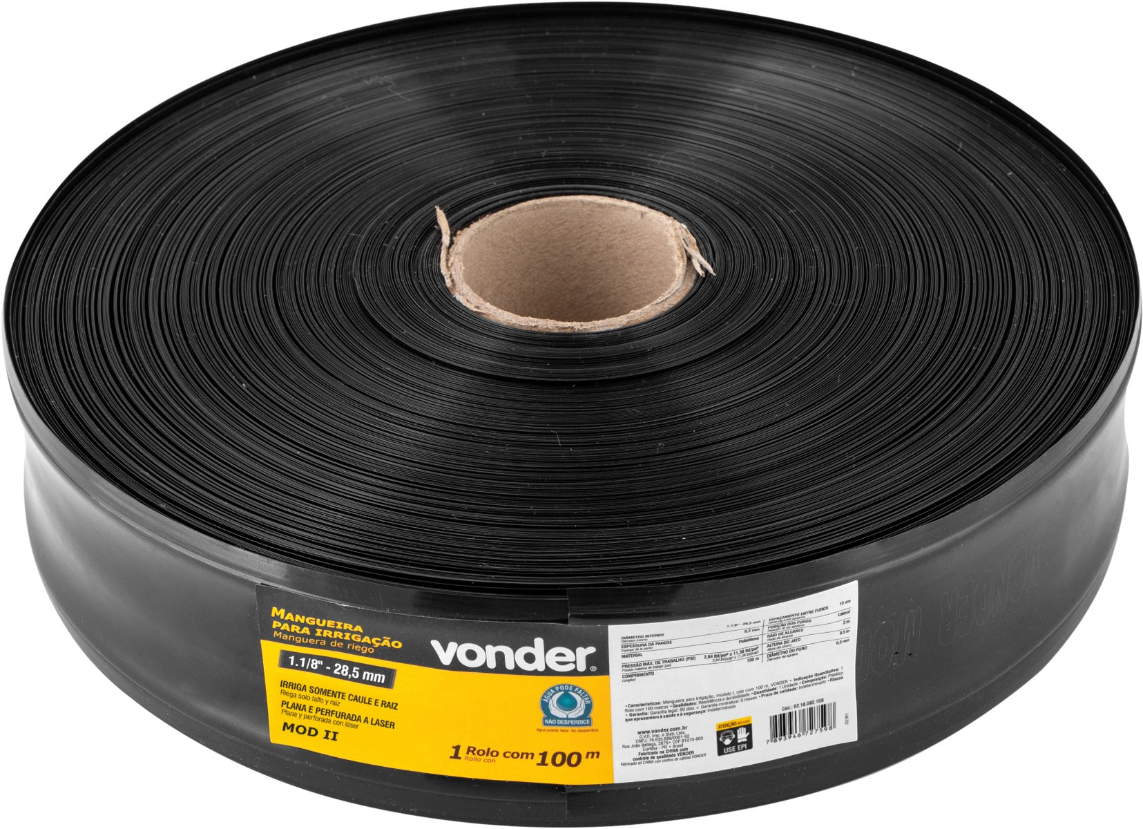 Possui um raio de alcance de 2 m e altura de aspersão de 0,5 m. A mangueira é plana e perfurada a raio laser, proporcionando maior precisão e uniformidade dos emissores, assim como a eficiência na aplicação da água.