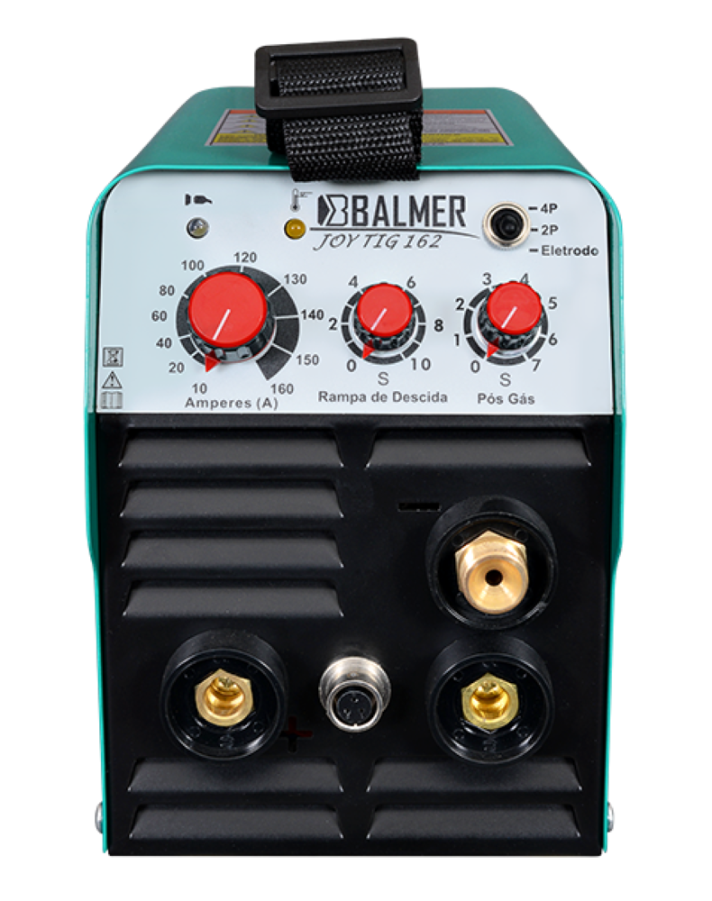 Nova linha JOY da BALMER: alto desempenho ao seu alcance! A JOY TIG 162 é o equipamento que você precisa para realizar serviços em qualquer lugar. Realiza solda TIG (DC) em alta frequência, para ligas metálicas de aço carbono e aço inoxidável, com maior facilidade para abertura do arco e sem contaminar a peça a ser soldada. Possui recursos para soldagem em 2 e 4 toques, regulagem de pós gás e rampa de descida, que proporcionam um ajuste preciso e garantem a qualidade da solda do início ao fim. A JOY TIG 162 também faz soldagem com eletrodo revestido em aço carbono e aço inoxidável com excelente desempenho, soldando diversos tipos de eletrodos. Possui os recursos Hot Start, Arc Force e Anti Stick que garantem um arco mais forte e estável durante a solda. Equipamento confiável, testado nas normas internacionais de soldagem.