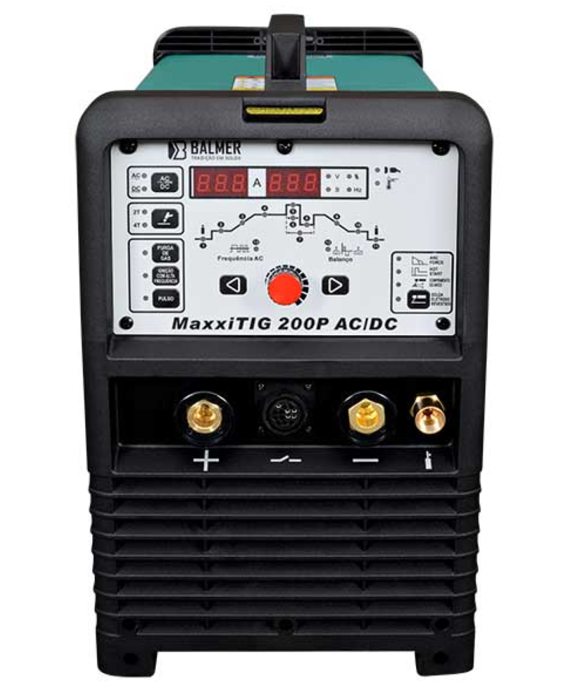 Amperímetro digital, ignitor de frequência, acionamento por 2 e 4 toques, pré gás, pós gás, rampa de subida, rampa de descida, Arc Force, ajuste de frequência de pulso, ajuste de largura de pulso, ajuste de balanço AC.