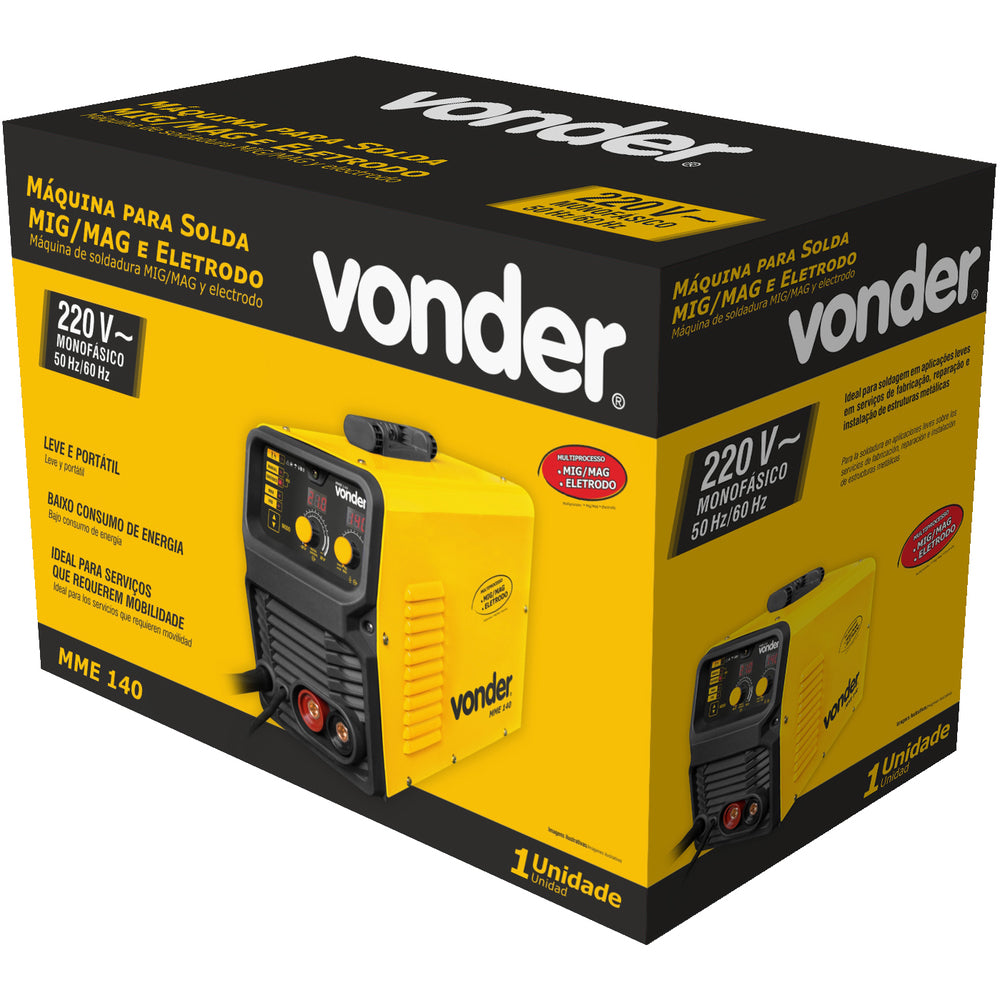Ideal para soldagem em aplicações leves em serviços de fabricação, reparação e instalação de estruturas metálicas. No processo MIG/MAG, permite a soldagem com arames sólidos de 0,6 mm e 0,8 mm em rolos de até 5 kg, utilizando gás de proteção. Permite também a utilização de arame do tipo autoprotegido, que dispensa o uso de gás em rolos até 5 kg. A VONDER disponibiliza para uso no equipamento: arame MIG para aço carbono 0,6 mm, carretel com 5 kg (74.32.006.005) | arame MIG 0,8 mm, carretel com 5 kg (74.32.008.005) | arame MIG 0,8 mm autoprotegido, carretel com 1 kg (74.32.008.001) | arame MIG 0,8 mm autoprotegido, carretel com 5 kg (74.32.008.050) | e regulador de gás RAR 30 (74.86.030.003). No processo com eletrodo revestido, permite a utilização de eletrodos até 3,25 mm, do tipo AWS E6013, AWS E7018, entre outros. Não acompanha regulador de gás, rolo de arame e cilindro de gás.