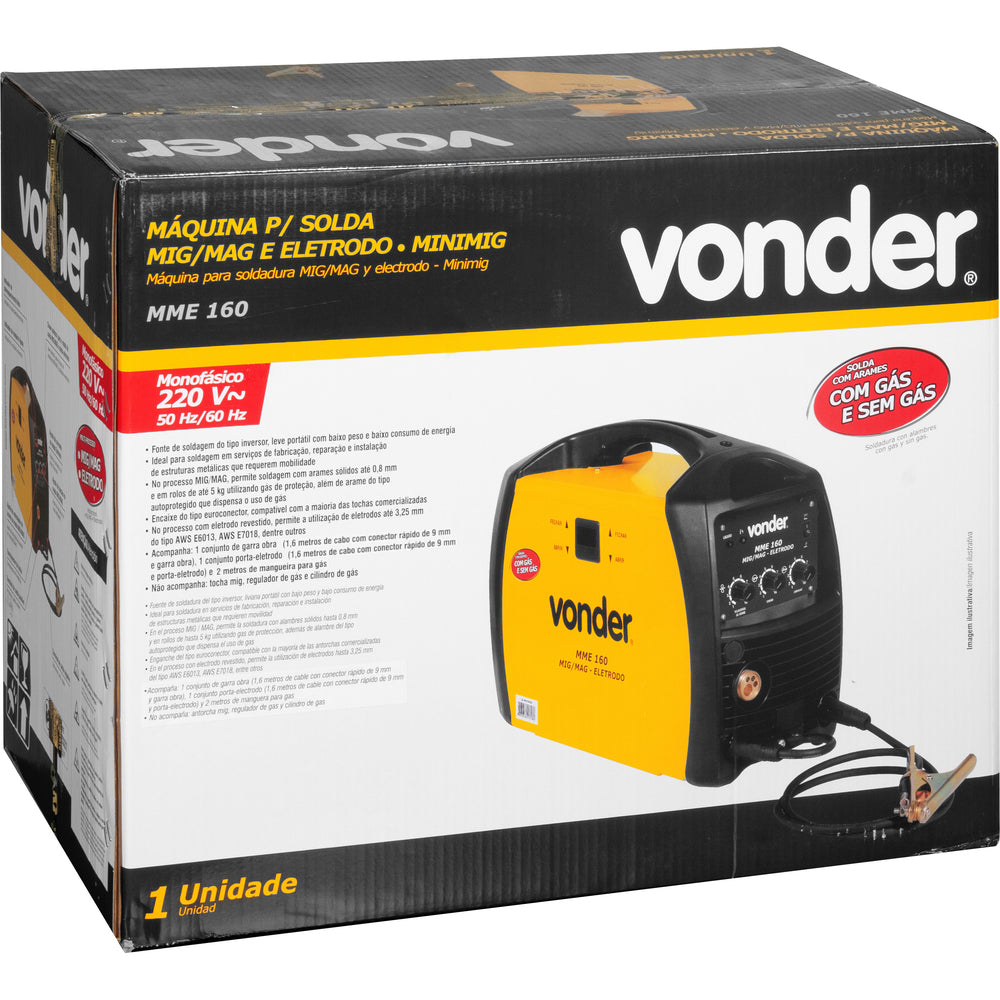Conteúdo da embalagem: 1 Máquina para Solda Mig/Mag e Eletrodo mme 160 Minimig Vonder