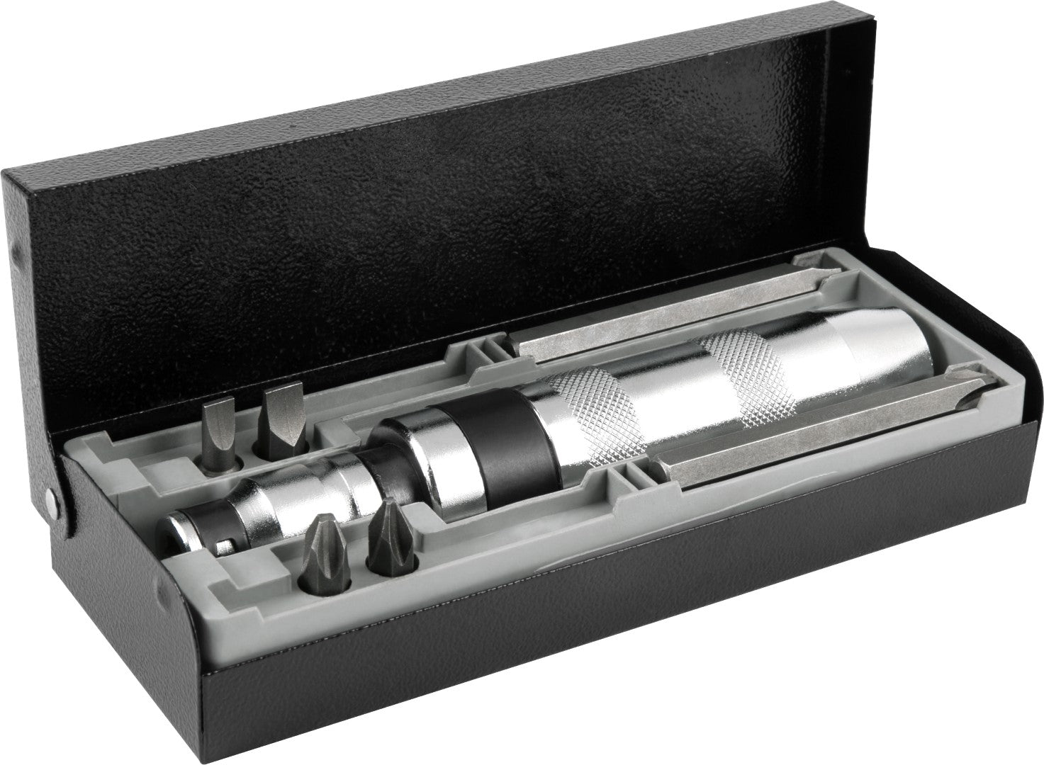 Conteúdo da embalagem: 1 Martelete de impacto manual. Acompanha: 1 bits phillips PH2, com comprimento de 36 mm; 1 bits phillips PH3, com comprimento de 36 mm; 1 bits fenda 9 mm, com comprimento de 36 mm; 1 bits fenda 11 mm, com comprimento de 36 mm; 1 bits phillips PH3, com comprimento de 80 mm e 1 bits fenda 8 mm, com comprimento de 80 mm.