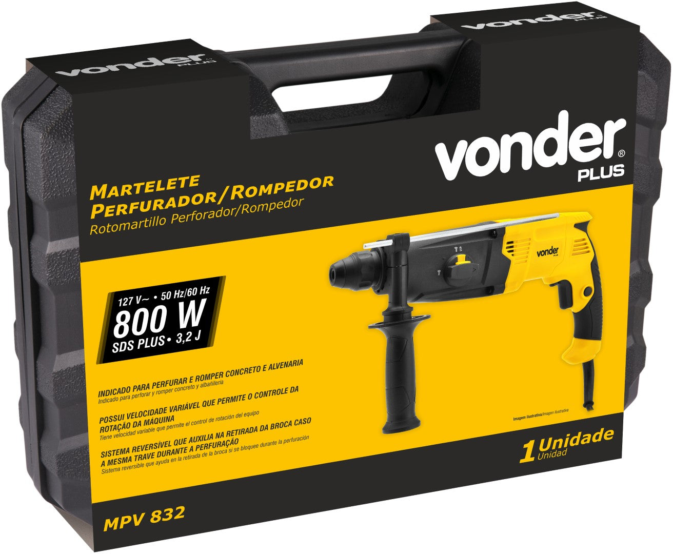 Conteúdo da embalagem: 1 Martelete perfurador/rompedor. Acompanha: 1 maleta plástica, 1 punho auxiliar e 1 limitador de profundidade.