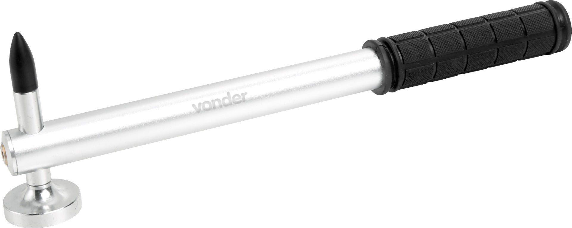 Fabricado em alumínio, possui cabo emborrachado e pontas em nylon.