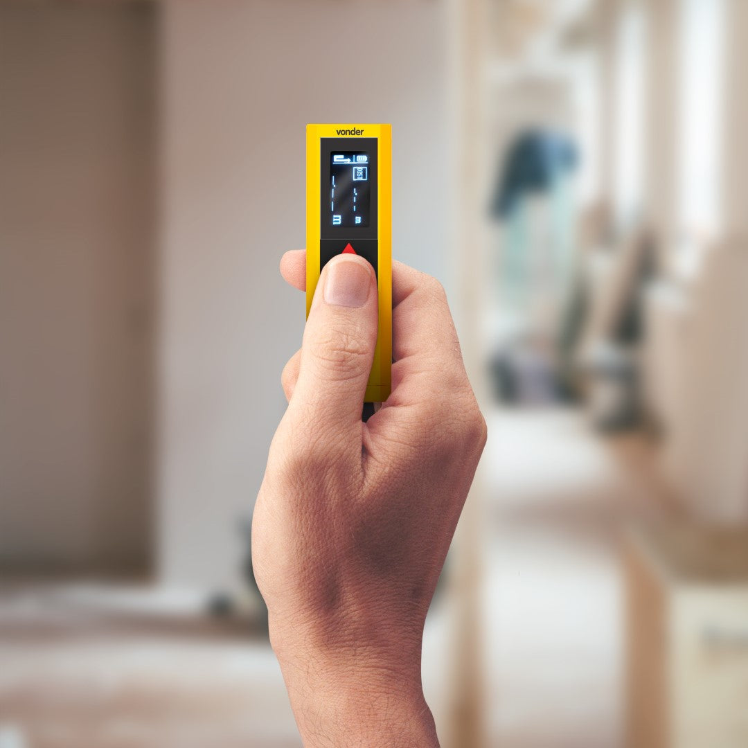 Extremamente leve e portátil (82 mm x 26 mm x 27 mm), facilitando o manuseio. Possui desligamento automático do laser em aproximadamente 30 segundos e do aparelho em 180 segundos, além de indicador de nível de carga. Conta com trena eletrônica (medição de distância x medição contínua), medição de área, volume, função Pitágoras (2 pontos auxiliares), posições de medição frontal e traseira e memória com 20 posições de registros.