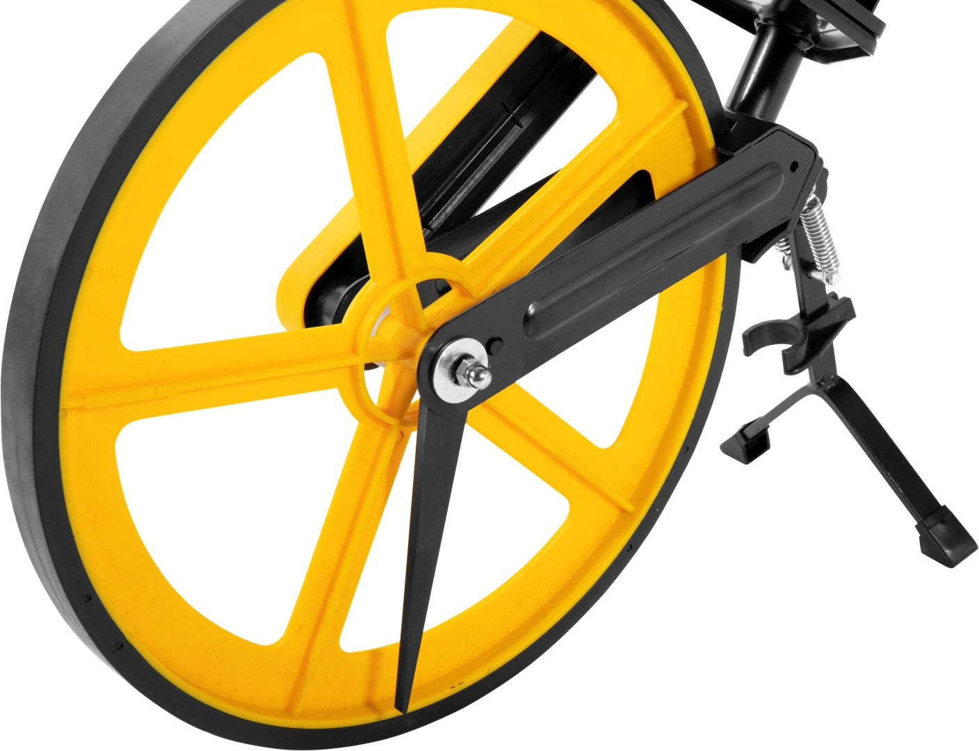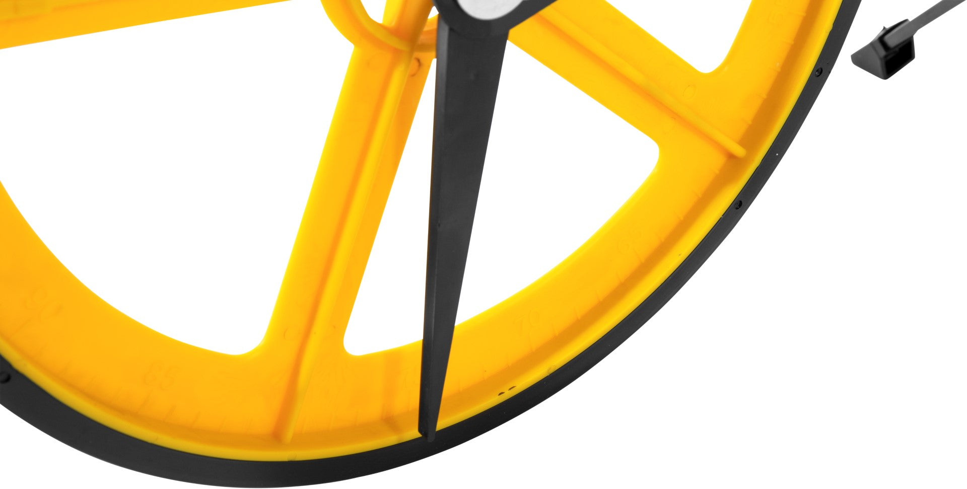 Possui contador analógico de 6 dígitos, sistema de freio (acionamento por gatilho), botão para zerar o contador, sistema que auxilia na limpeza da roda, apoio com pés de borracha, cabo dobrável e bolsa para armazenagem e transporte.