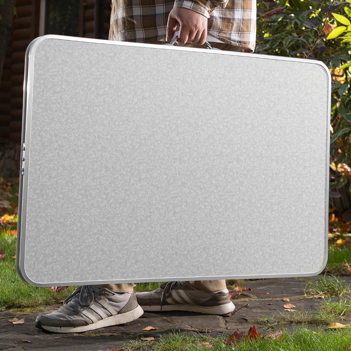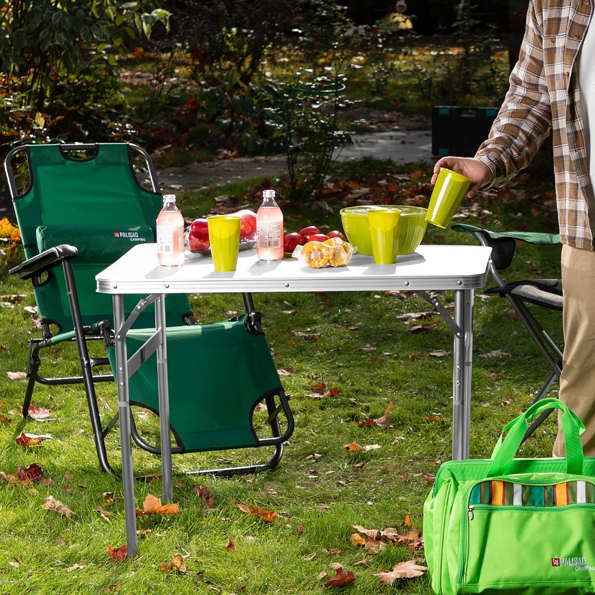 A Mesa Dobrável Palisad Camping 695838 é a solução ideal para quem busca praticidade e conforto em qualquer lugar. Com dimensões generosas de 900 x 600 mm e altura ajustável de 300 a 700 mm, esta mesa de alumínio com tampo em MDF resistente acomoda confortavelmente suas refeições, jogos ou atividades ao ar livre. Seja para um piquenique, camping, festa no jardim ou como mesa auxiliar em casa, a Palisad oferece versatilidade e estabilidade em qualquer superfície. Seu design inteligente permite fácil transporte e armazenamento, com pernas removíveis e dobráveis que se fixam no tampo, ocupando o mínimo de espaço. Com capacidade para suportar até 50 kg, esta mesa é robusta e confiável, garantindo momentos agradáveis com amigos e familiares. Leve, pesando apenas 4,22 kg, e com alça lateral para facilitar o transporte, a Mesa Dobrável Palisad é a companheira perfeita para suas aventuras.