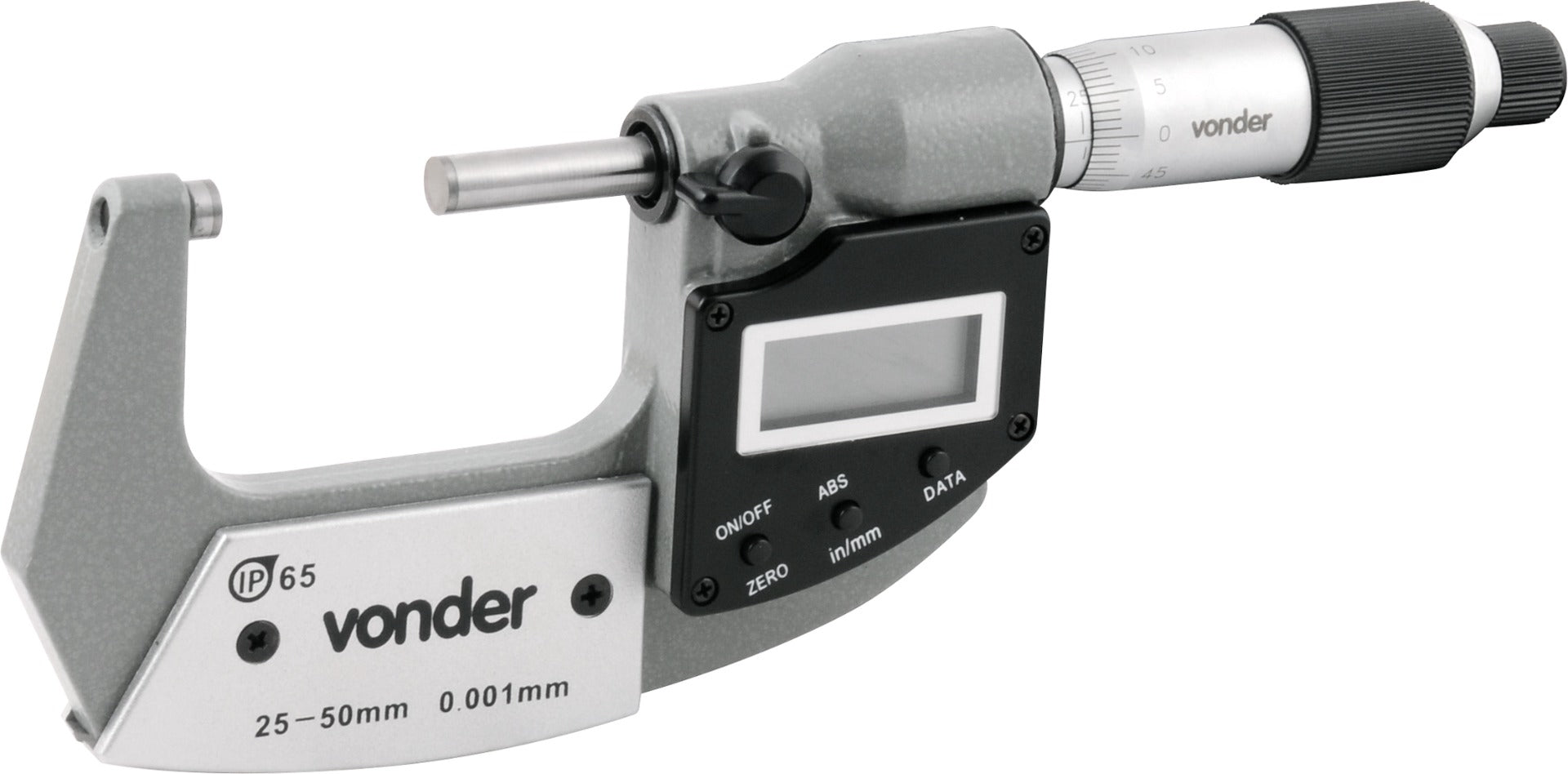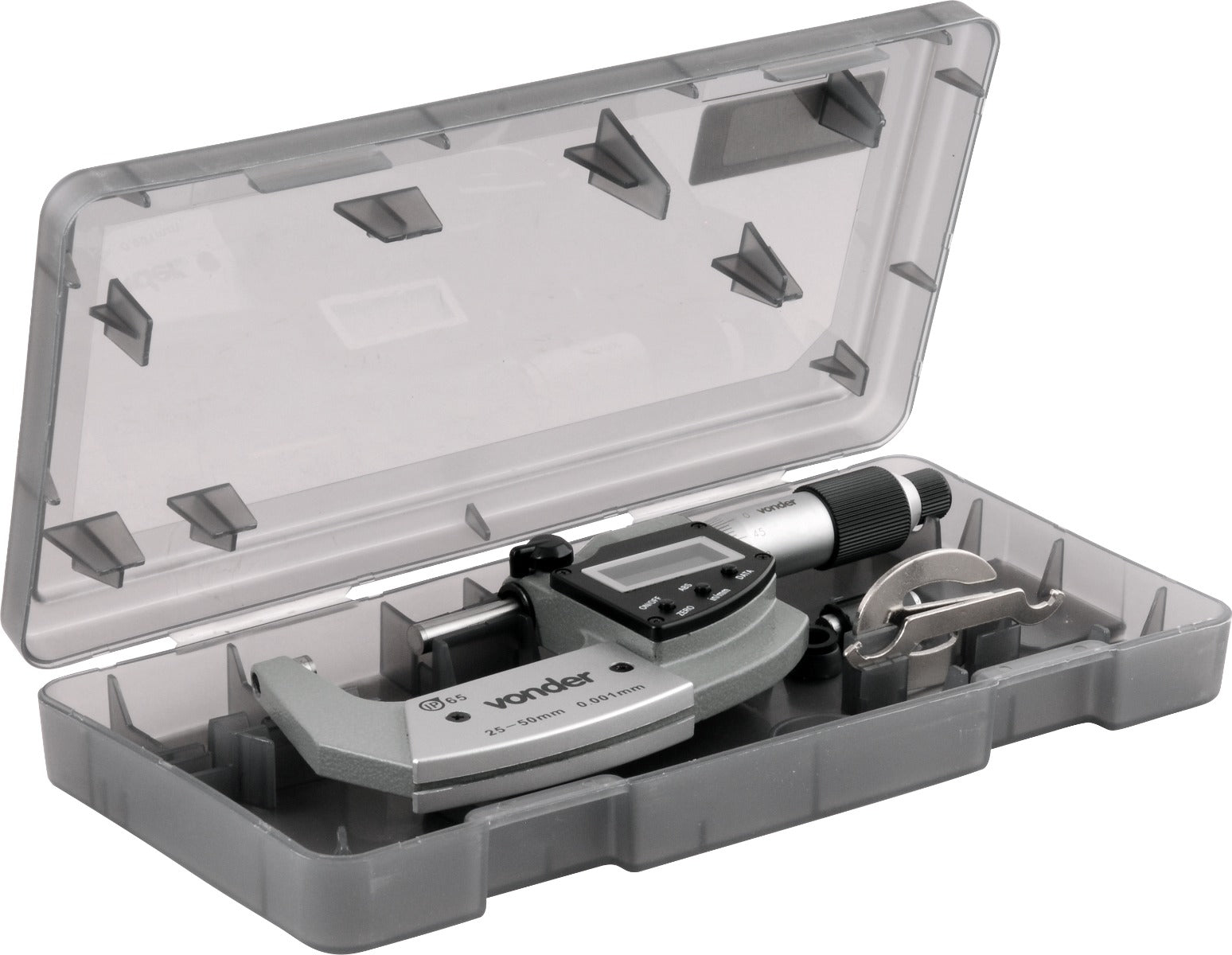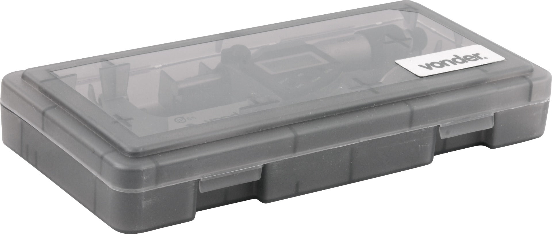 1 Micrômetro externo digital. Acompanha: 1 chave de ajuste e 1 chave auxiliar para abertura da tampa da bateria.