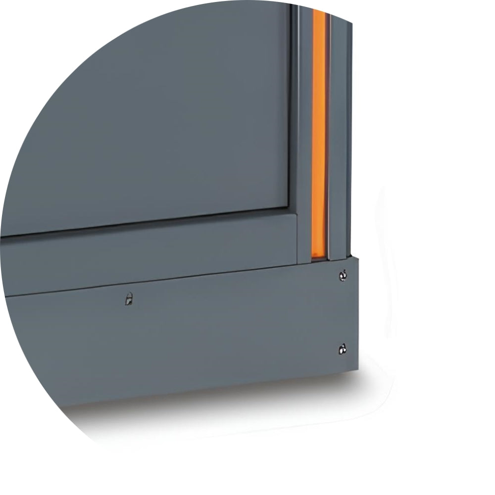 Equipado com corrediças de rolamento de esferas, garantindo uma abertura e fechamento suave e eficiente.