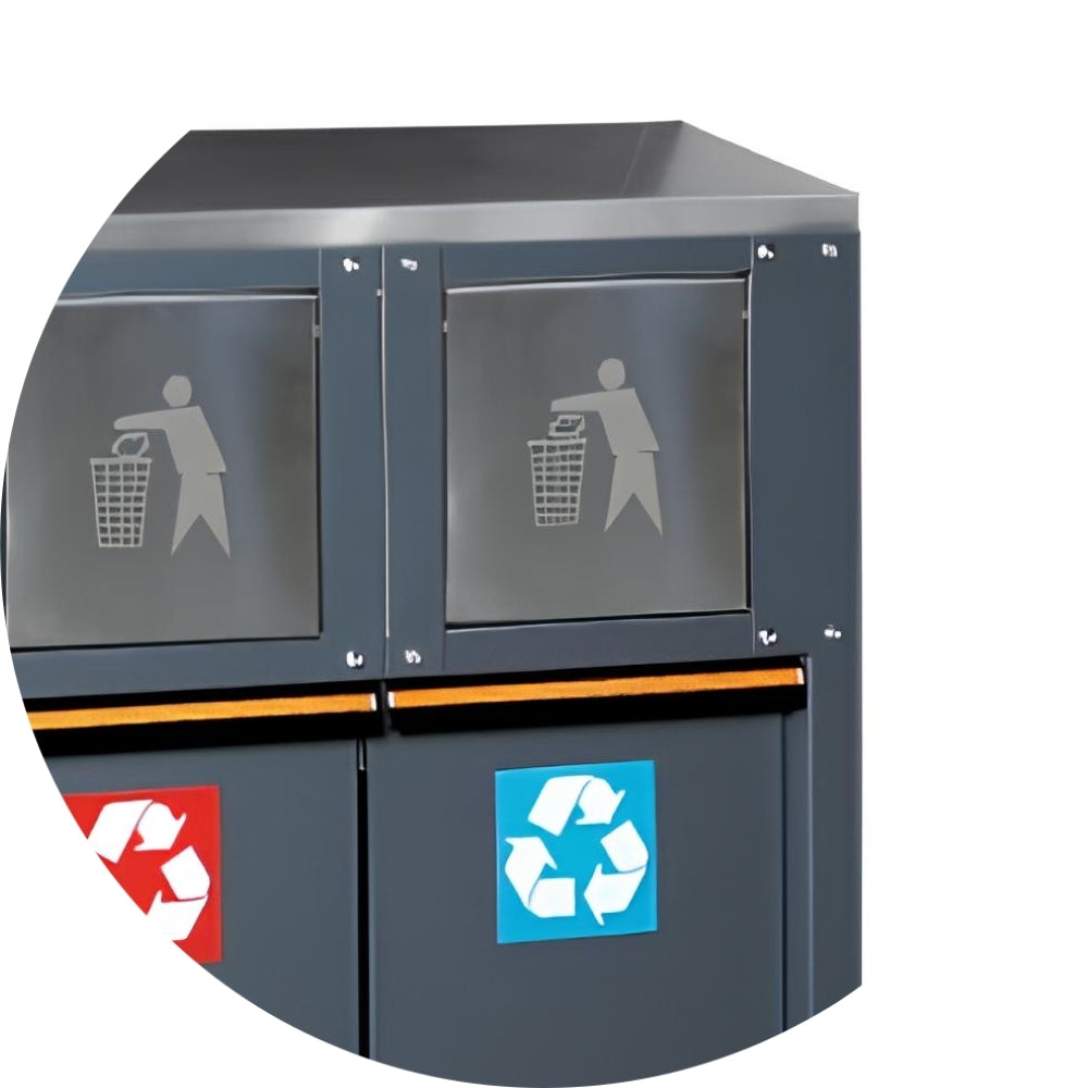 O módulo C45PRO RD/X é projetado para criar uma estação de reciclagem eficiente e organizada em sua garagem ou oficina. Ele permite a separação e coleta seletiva de diferentes tipos de resíduos, como vidro, papel e plástico.