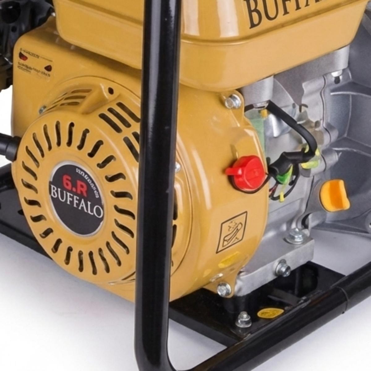 A estrutura da Motobomba Buffalo BFG 4" foi feita para resistir. Com lubrificação por salpico, sistema de ignição eletrônica CDI e filtro de ar com elemento de papel, o motor garante funcionamento contínuo e seguro, mesmo em ambientes adversos. O tanque de 6,5 litros de gasolina comum e consumo médio de 3,1 L/h oferecem excelente autonomia para longas jornadas de trabalho.