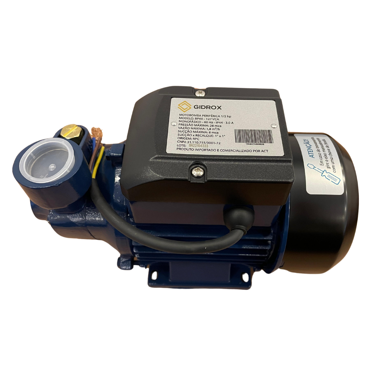 Conteúdo da embalagem: 1 Motobomba Periférica Gidrox BP60 0,5 Hp Monofásica 110V