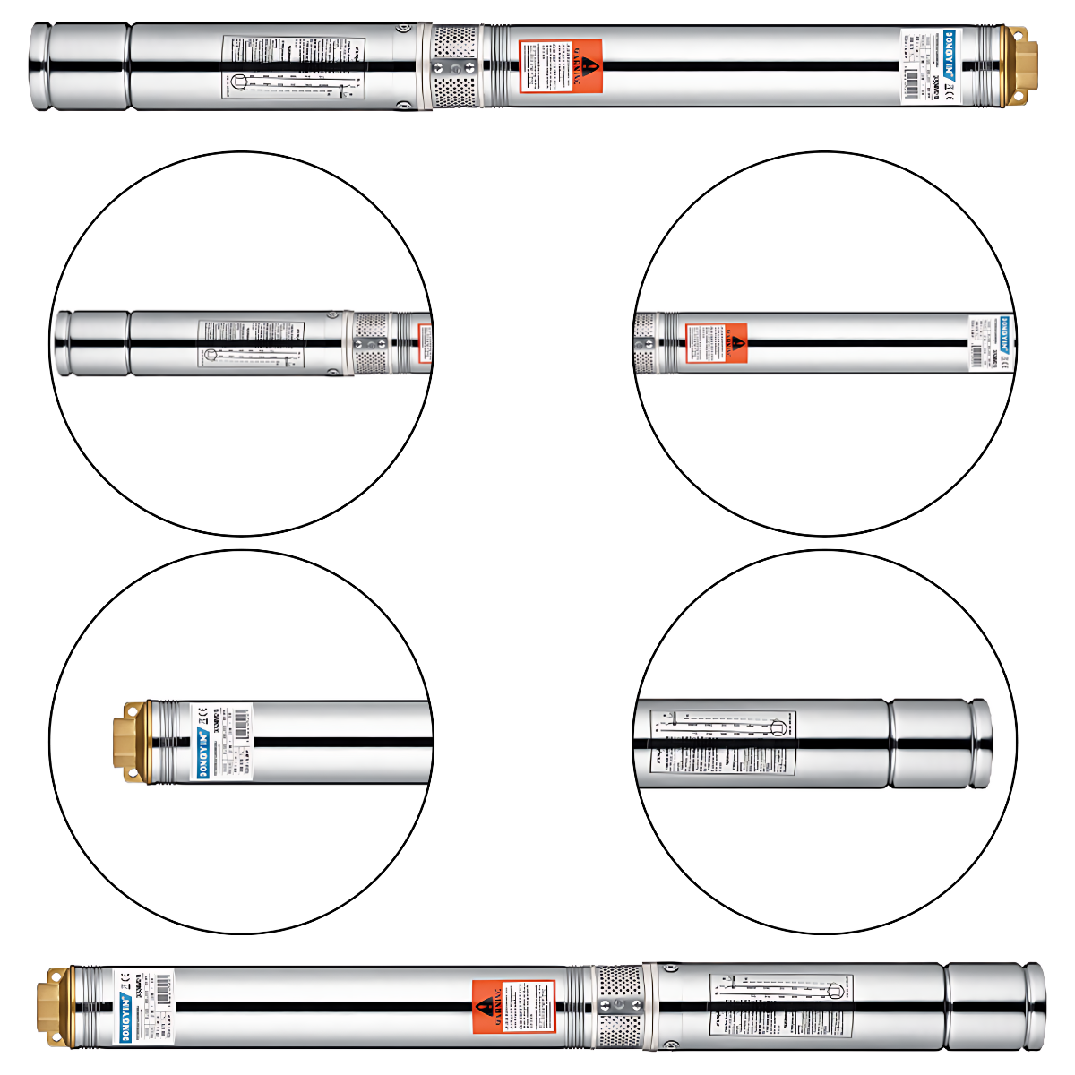 Fabricada com corpo em aço inox AISI 304, a Motobomba Submersa Dongyin 4” é resistente à corrosão e projetada para durar. Além disso, sua construção inclui bronze e termoplástico, materiais que garantem maior resistência mecânica e adaptabilidade a diferentes condições de uso. O selo mecânico em grafite cerâmica buna assegura vedação eficiente, evitando vazamentos e garantindo um funcionamento seguro e confiável.