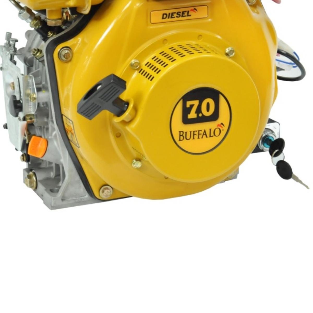Precisa de um motor robusto e econômico para impulsionar suas atividades no campo, construção ou indústria? O Motor Diesel Buffalo BFD 7,0CV com Partida Manual (modelo 70705) é a solução ideal. Projetado para equipamentos como motobombas, geradores, roçadeiras costais, betoneiras e compactadores, este motor a diesel oferece durabilidade e desempenho superior. Com 7,0 cavalos de potência a 3600 RPM e torque de 1,5 kgfm a 2500 RPM, o BFD 7,0CV garante força constante mesmo em condições exigentes. Seu sistema de refrigeração a ar e o motor 4 tempos proporcionam eficiência térmica e baixa manutenção, otimizando sua produtividade e reduzindo custos. A autonomia é um destaque, com um tanque de 3,5 litros e consumo médio de apenas 1,8 litros por hora, permitindo longas jornadas de trabalho sem interrupções. A injeção mecânica assegura respostas rápidas e funcionamento consistente, enquanto a lubrificação forçada por bomba protege o motor, prolongando sua vida útil. A partida manual, com ignição por compressão, elimina a necessidade de componentes elétricos, tornando-o perfeito para locais remotos.