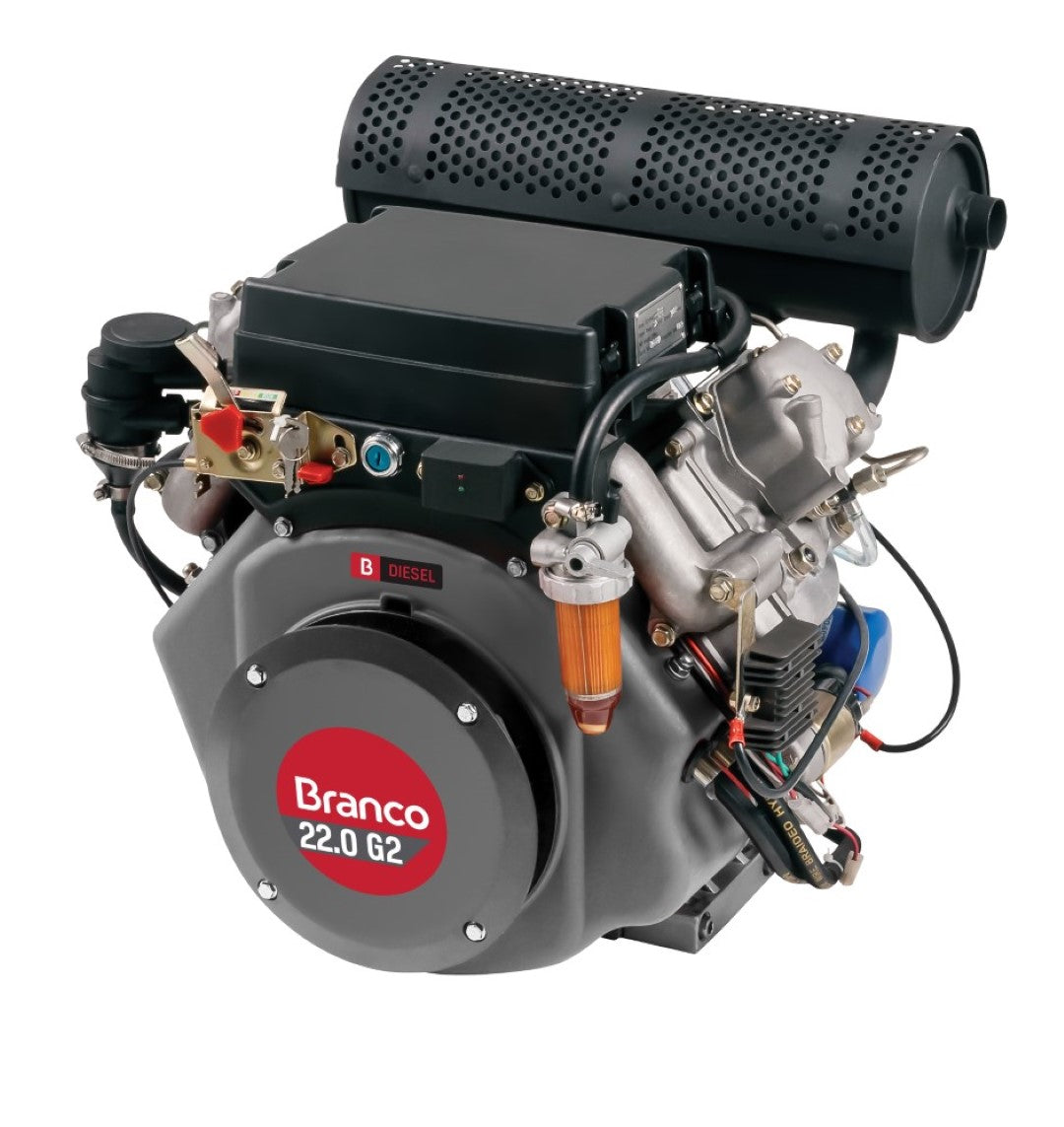 Motor: horizontal, dois cilindros em "V" (90 graus), diesel, refrigerado a ar