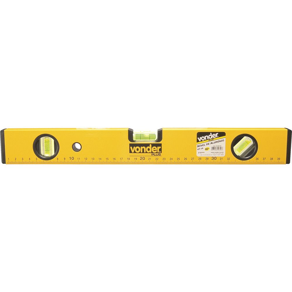 Possui corpo em alumínio, conferindo maior leveza e 3 bolhas, sendo uma para nivelamento vertical, uma para nivelamento horizontal e uma para nivelamento 45°