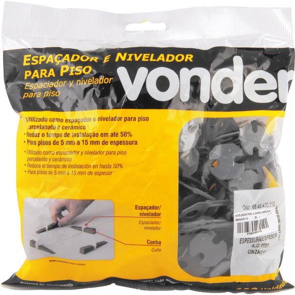 Transforme a instalação de pisos em uma tarefa rápida e precisa com o Nivelador de Piso Vonder. Este produto é ideal para quem busca eficiência e qualidade na colocação de pisos porcelanato e cerâmico. Com uma espessura de 4 mm, ele garante um nivelamento perfeito, reduzindo o tempo de instalação em até 50%. A cor cinza do nivelador se integra facilmente ao ambiente, proporcionando um acabamento discreto e profissional.