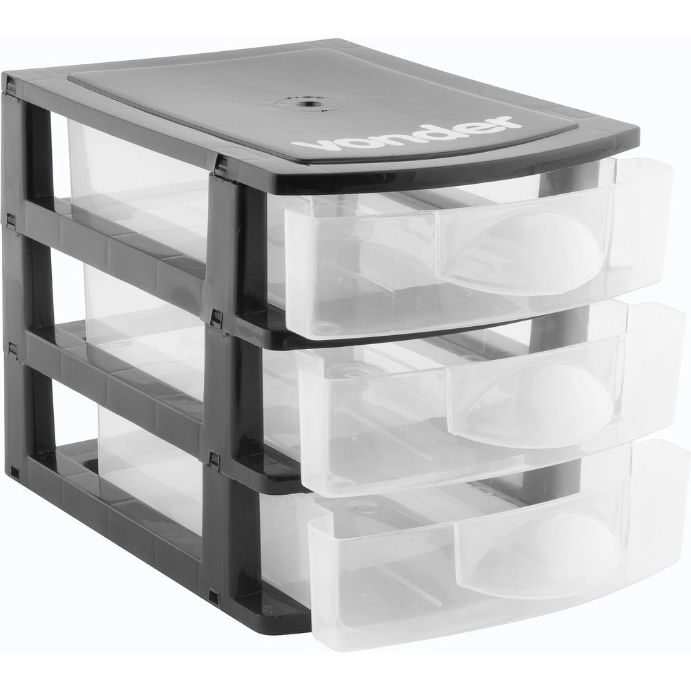 Organizador Plástico 3 Gavetas Preto E Transparente - Vonder