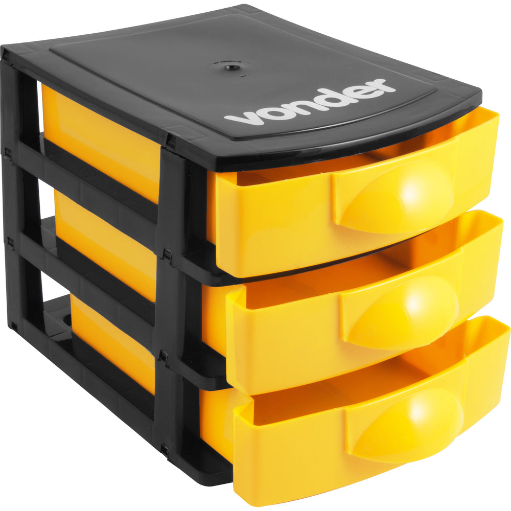 Organizador Plástico Mini 3 Gavetas Preto E Amarelo - Vonder