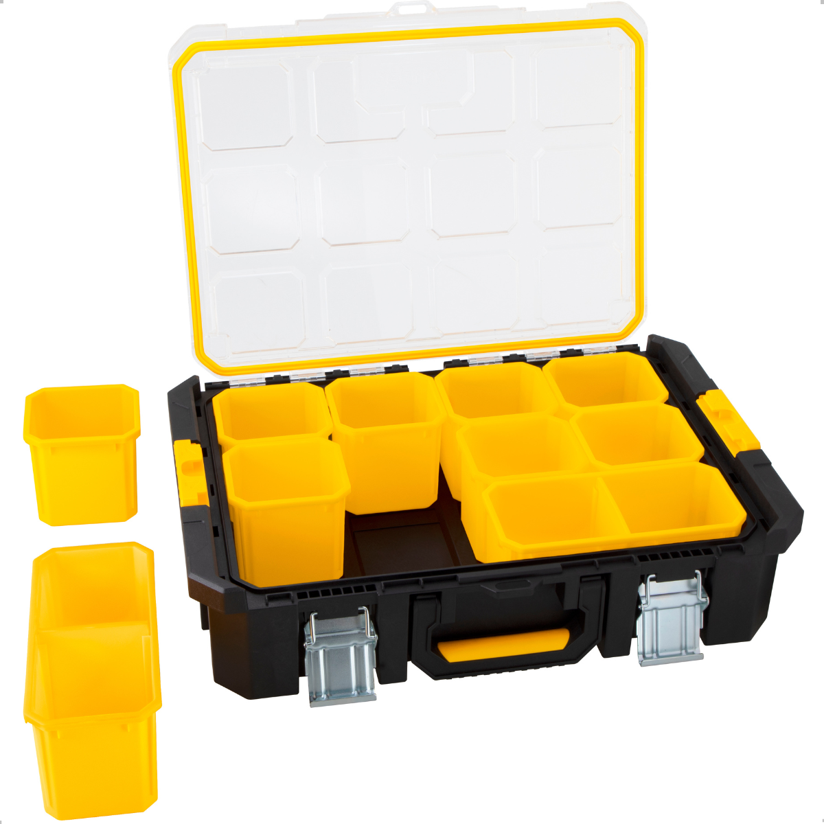 - Cor do organizador para ferramentas: Preto, amarelo e transparente