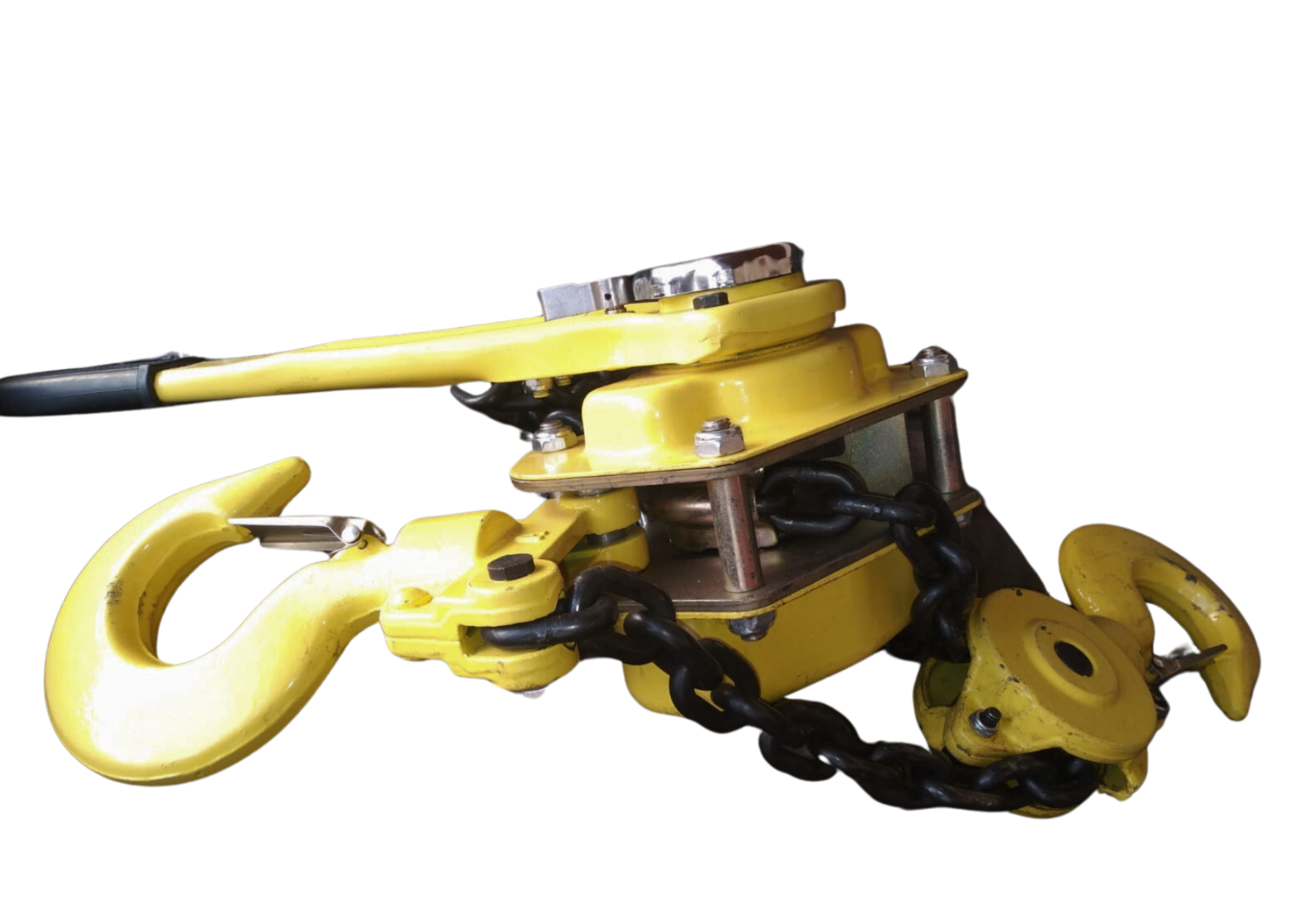 Possui Estrutura de aço, com 2 ganchos em aço forjado com trava de segurança, que evita o desengate do material que está sendo usado (corda, corrente, cinta, etc). Usado em lugares estreitos, ar livre e lugares aéreos para o trabalho de puxar e esticar em qualquer ângulo. Eixo central em ferro fundido nodular, carenagem em chapa de aço. Polia de operação em ferro fundido, roldana guia para a corrente de carga e catraca e disco de freio para o giro (sobe) e reversão (desce).