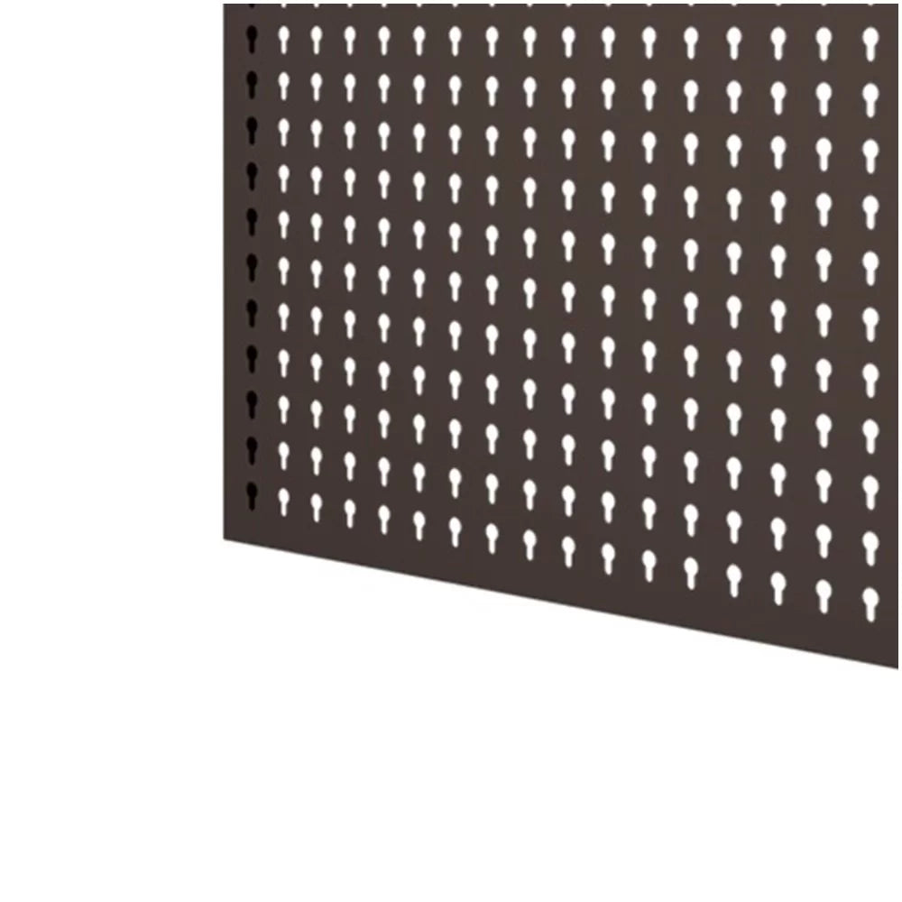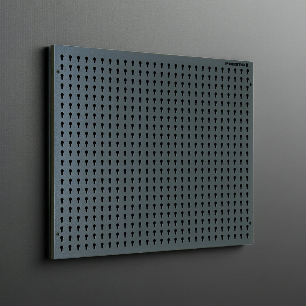 Painel Para Ferramentas Com Ganchos Plásticos 725 x 575 para ferramentas totalmente confeccionado em chapa de aço de baixo teor de carbono com espessura de 0,60mm com sistema de dobra simples na parte superior e inferior e dobras duplas nas laterais. Possui 04 (quatro) furações para instalação nas dobras laterais em formato oblongo para encaixe do painel aos parafusos previamente instalados na parede. Acabamento superficial através de tratamento químico antiferruginoso e fosfatizante com pintura eletrostática a pó com camada mínima de 70 micras. Produto não acompanha ganchos.