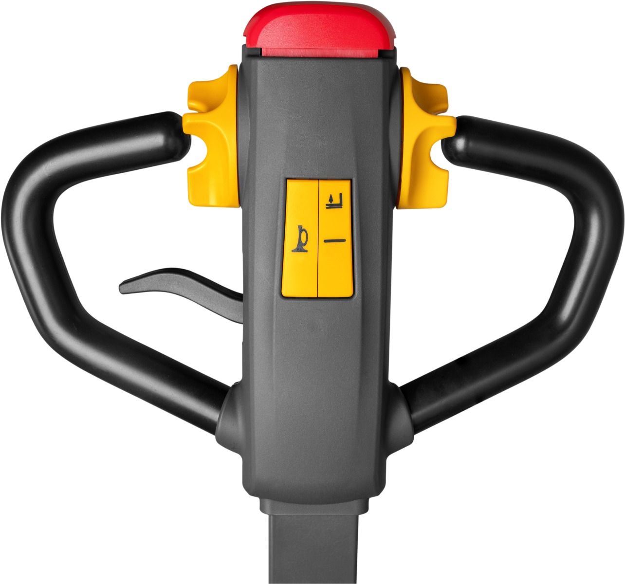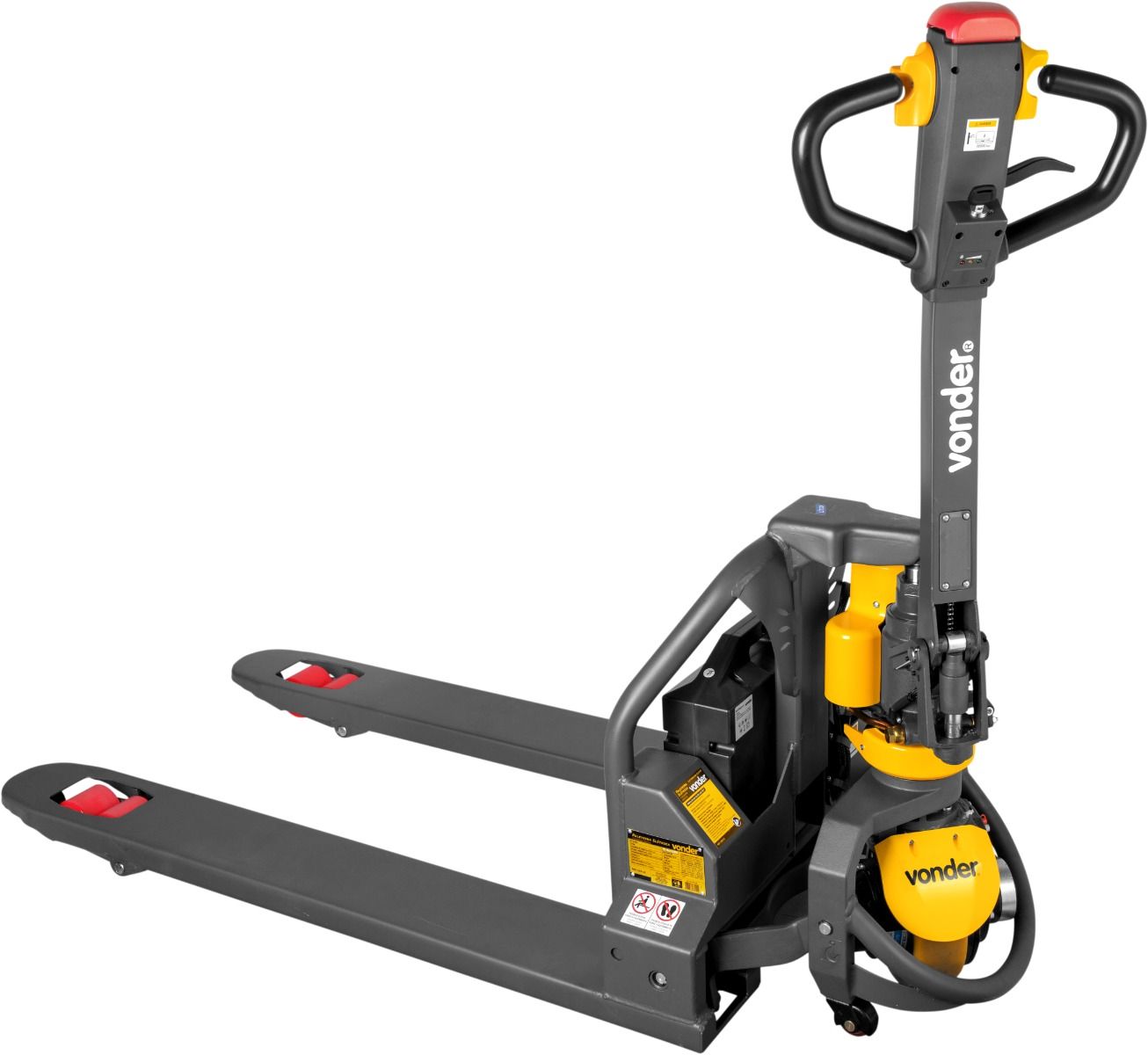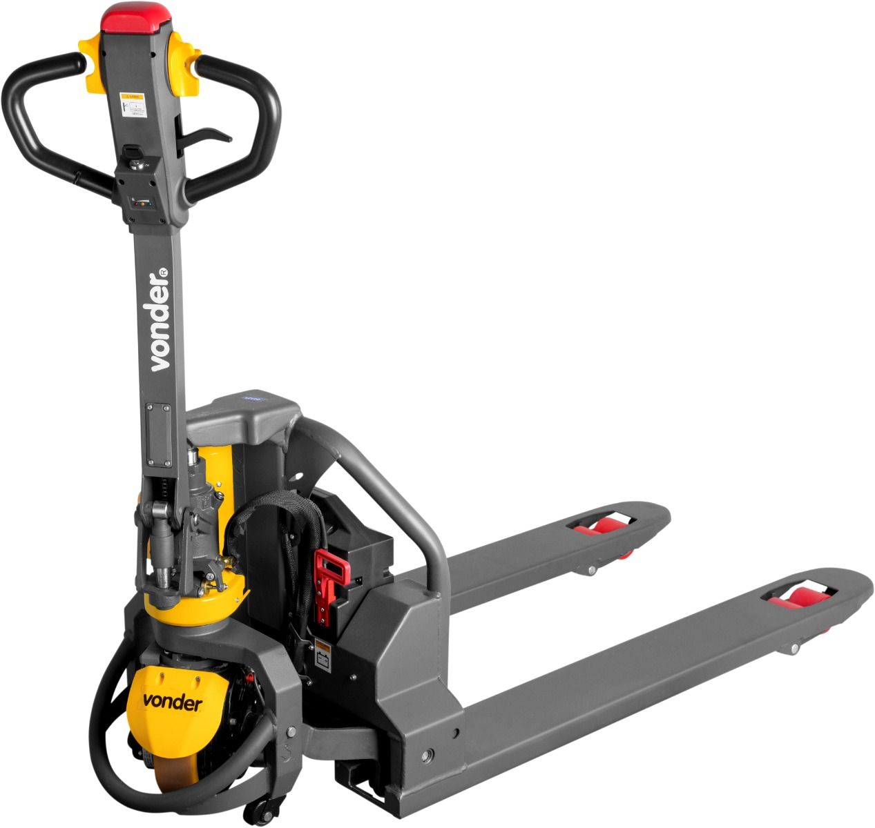 Possui bateria de íons de lítio com 48 V. Extremamente leve, de fácil manutenção, devido à construção e qualidade dos seus componentes, e com grande capacidade de armazenagem de carga, oferecendo um tempo de funcionamento longo que pode chegar a até 6 horas (este tempo pode variar de acordo com o trabalho, peso da carga, entre outras variáveis). Com apenas 3 horas de carregamento, é possível atingir entre 90% e 100% de carga (podem ocorrer variações) sem o risco de adquirir o efeito memória. Por ser de fácil acesso, a troca da bateria é realizada de forma rápida e prática, sem a necessidade de uso de nenhuma ferramenta. Devido à estrutura robusta e durável, o equipamento poderá trabalhar 24 horas ininterruptamente, basta adquirir baterias sobressalentes. Possui timão extremamente confortável, estilo borboleta, com acionamento pelo polegar. A base com mola do timão facilita o manuseio e evita trancos, também é fundido em uma peça única, deixando a estrutura ainda mais reforçada e aumentando a vida útil do equipamento. Multifunção, oferece fácil e rápido acesso aos comandos do equipamento, como: frente e reverso, alavanca para baixar/elevar a carga, buzina e chave liga/desliga, além do botão de emergência com sistema antiesmagamento de retorno rápido. Possui chassi integrado com estrutura forte e desenho compacto, além de motor sem escovas (brushless), proporcionando elevada eficiência e praticamente nenhuma manutenção. Equipamento com Softstart (partida suave), movimentos de aceleração e desaceleração suaves, evitando trancos ou arranques rápidos durante sua partida, oferecendo maior segurança ao operador e menor risco de desequilíbrio da carga, principalmente no trabalho com cargas frágeis. Projetado para uso interno, é pequeno, leve e fácil de manobrar, pode entrar e se movimentar em locais estreitos, como: mercados, distribuidoras de bebidas, elevadores, pequenos armazéns, entre outros, desde que o piso ofereça condições para o trabalho. Conta ainda com sistema de rodas duplas no garfo, fabricadas em PU (poliuretano), proporcionando maior estabilidade da carga, além de maior durabilidade e menor ruído.