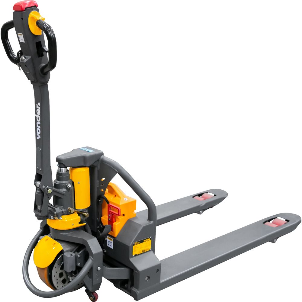 Possui bateria de íons de lítio com 48 V. Extremamente leve, livre de manutenção e de grande capacidade de armazenagem de carga, oferecendo um tempo de funcionamento longo podendo chegar até a 6 horas (Este tempo pode variar de acordo com o trabalho, peso da carga, trabalho em rampas, entre outras variáveis). Com apenas 3 horas de carregamento já se consegue uma carga entre 90% e 100%. (pode ocorrer variações) e ainda sem riscos de adquirir o efeito memória. Por ser de fácil acesso, a troca da bateria é realizada em apenas 10 segundos e ainda sem a necessidade de nenhuma ferramenta. Devido a estrutura robusta e durável, o equipamento poderá trabalhar 24 horas ininterruptamente, bastando adquirir baterias sobressalentes. Timão extremamente confortável estilo borboleta com acionamento pelo polegar. Por ser multifunção, oferece fácil e rápido acesso aos comandos do equipamento, como: frente e reverso, alavanca para baixar / elevar a carga, buzina e chave liga-desliga, além do botão de emergência com sistema antiesmagamento de retorno rápido. Base do timão com mola que facilita o manuseio e evita trancos ao equipamento, aumentando sua vida útil além de ser fundido em uma peça única, deixando a estrutura ainda mais reforçada. Chassi integrado com estrutura forte e desenho compacto. Fácil manutenção devido a construção e qualidade dos componentes. Motor sem escovas (Brushless), proporcionando elevada eficiência e praticamente livre de manutenções. Equipamento com Softstart, ou seja, partida suave, evitando trancos ou arranques rápidos durante sua partida, proporcionando maior segurança ao operador e menor risco da carga desequilibrar, principalmente no trabalho com cargas frágeis. Os movimentos de aceleração e desaceleração também são suaves, evitando trancos e desequilíbrio da carga. Equipamento para uso interno, pequeno, leve, fácil de manobrar que pode entrar e se movimentar nos mais apertados locais como, mercados, distribuidoras de bebidas, elevadores, pequenos armazéns, entre outros, desde que o piso ofereça condições para o trabalho. Sistema de rodas duplas no garfo, proporcionando maior estabilidade da carga em pisos irregulares, além de serem fabricadas em PU, conferindo maior durabilidade e menor ruído. Freio regenerativo de alta tecnologia, pois a energia produzida durante a desaceleração e frenagem, é direcionada à bateria. Este sistema, além de ser extremamente seguro, ainda proporciona um ganho de autonomia do equipamento, gerando menos paradas para carregamento.