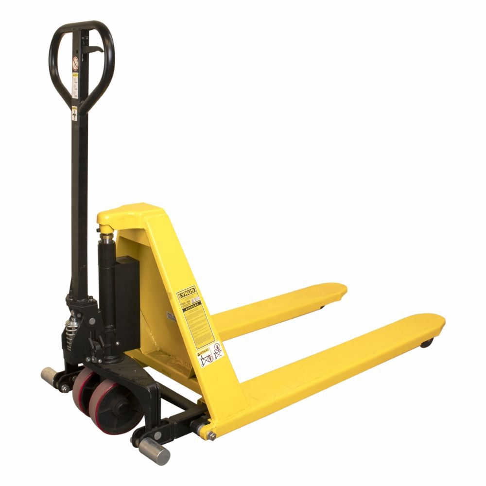 As dimensões generosas do garfo/plataforma elevação (1150 x 685 x 50 mm) oferecem espaço suficiente para acomodar uma variedade de cargas, enquanto as rodas de direção e do garfo garantem uma movimentação suave e precisa em diferentes superfícies.