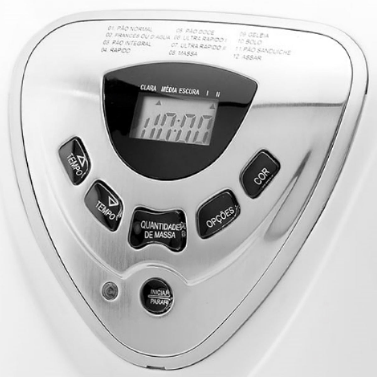 Com a função timer, você pode programar o preparo do pão com até 13 horas de antecedência, garantindo que ele esteja pronto exatamente quando você desejar. Além disso, ela oferece 3 ajustes de cor do pão - claro, médio e escuro - e até 12 programas diferentes para preparar uma variedade de pães doces e salgados, geleias, pudins, panetones e muito mais.
