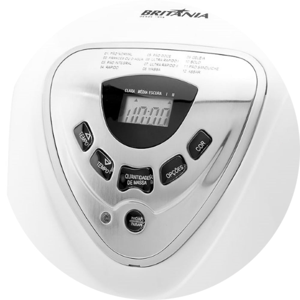 Conteúdo da embalagem: 1 Panificadora Elétrica Multipane Britânia Branca Com 12 Funções e Forma Antiaderente 220V