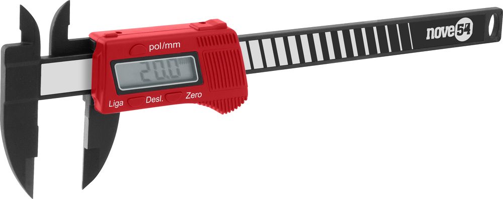 Capacidade do paquímetro: 0 - 150 mm / 0 - 6" Resolução do paquímetro digital: 0,1 mm / 0,01" Exatidão do paquímetro: +/- 0,03 mm Material do corpo do paquímetro: Plástico Material das faces de medição do paquímetro: Fibra de carbono Alimentação : Bateria SR-44 Tipo de saída de dados do paquímetro digital: Não se aplica Altura útil da orelha do paquímetro: 14,0 mm Altura total da orelha do paquímetro: 22,0 mm Comprimento total do paquímetro: 240,0 mm