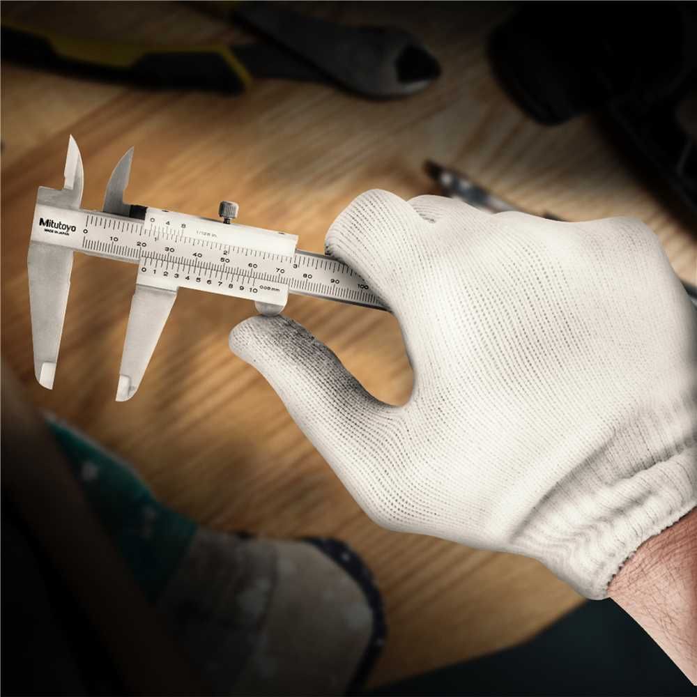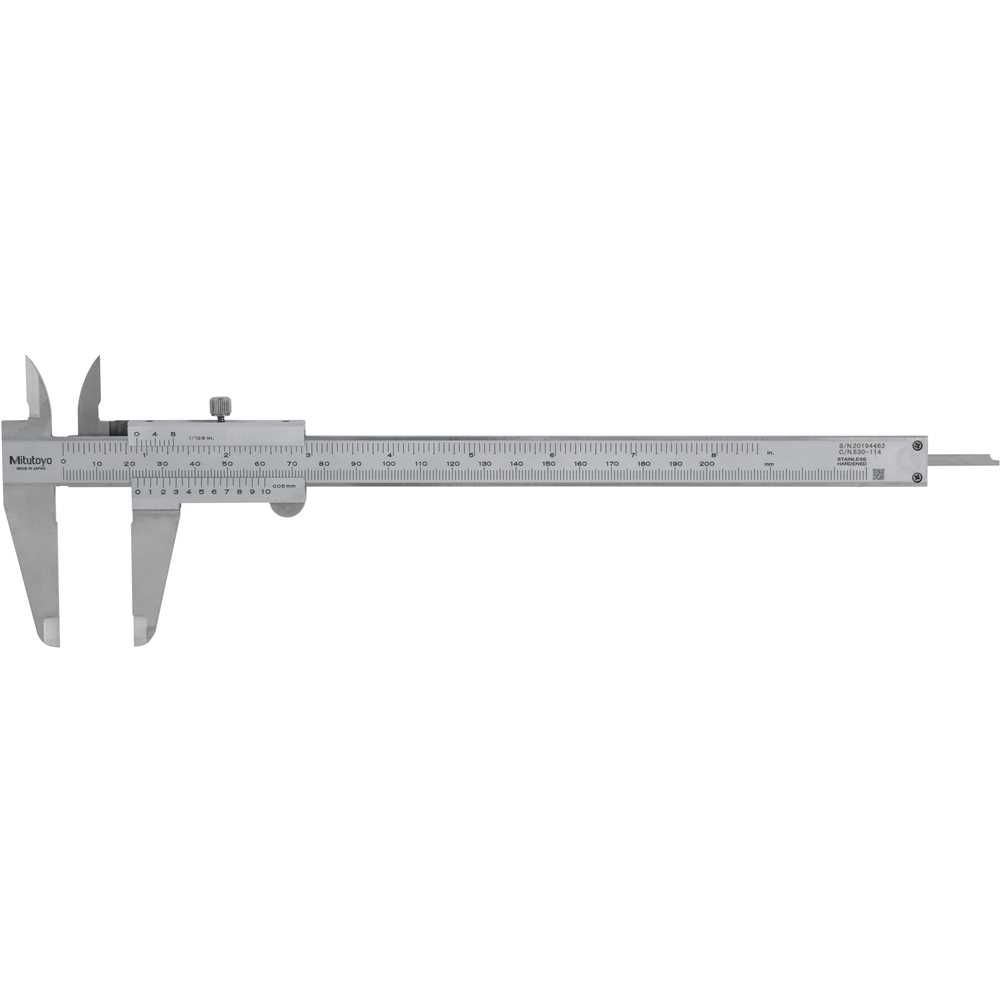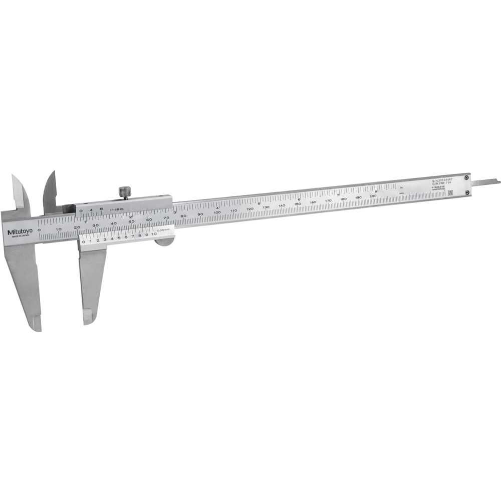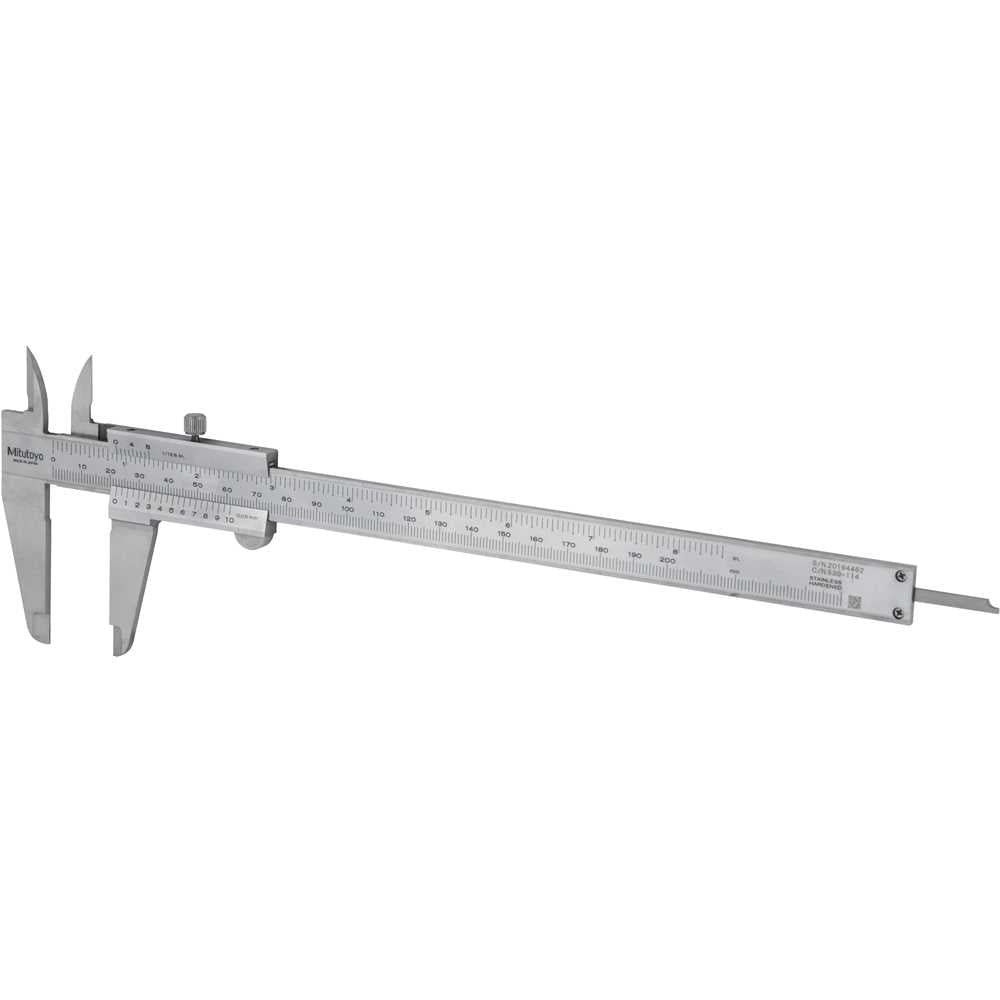 Possui graduação em desnível que previne o desgaste por atrito e pequeno ângulo da face do vernier (14 graus), que promove fácil leitura da escala.
