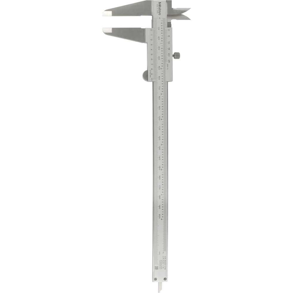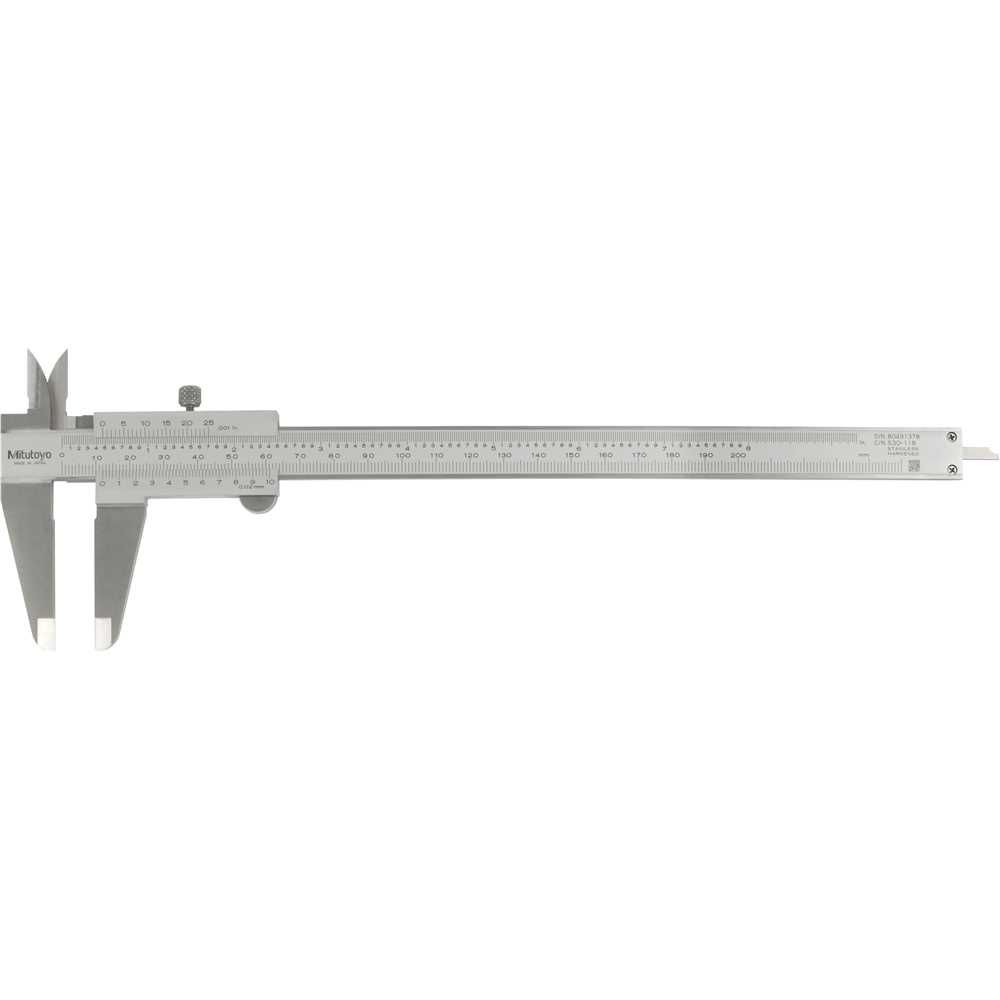 Possui graduação em desnível, que previne o desgaste por atrito; escala principal com revestimento em titânio; e pequeno ângulo da face do vernier (14 graus), que promove fácil leitura da escala.