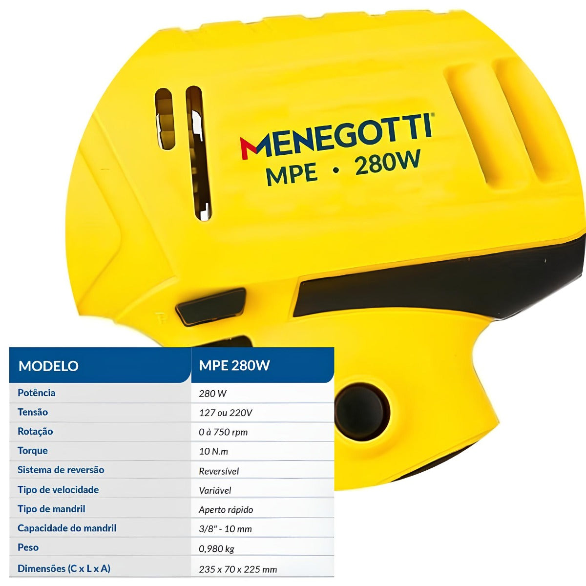 Conteúdo da embalagem: 1 Parafusadeira Eletrica MPE-280W 220V 60HZ