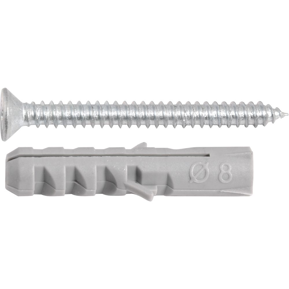 Possui acabamento zincado que aumenta a resistência contra corrosão/oxidação. Conta com cabeça chata/cônica que oferece acabamento rente à superfície e acompanha bucha plástica.
