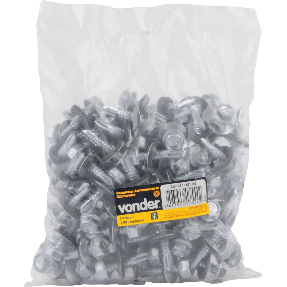 **Parafuso Autobrocante Sextavado 6,3x1'' Com 100 Peças Vonder**