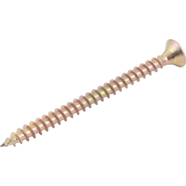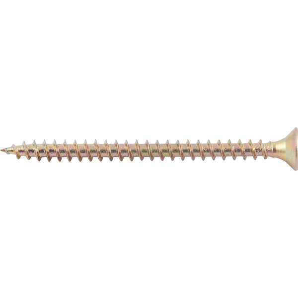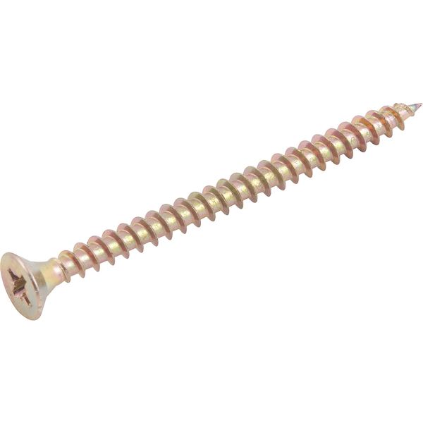 Tipo de cabeça do parafuso madeira Chata - fenda cruzada/pozidrive Diâmetro do parafuso madeira: 5,0 mm Comprimento do parafuso madeira: 65,0 mm Material do parafuso madeira: Aço carbono Acabamento do parafuso madeira: Bicromatizado - zincado amarelo