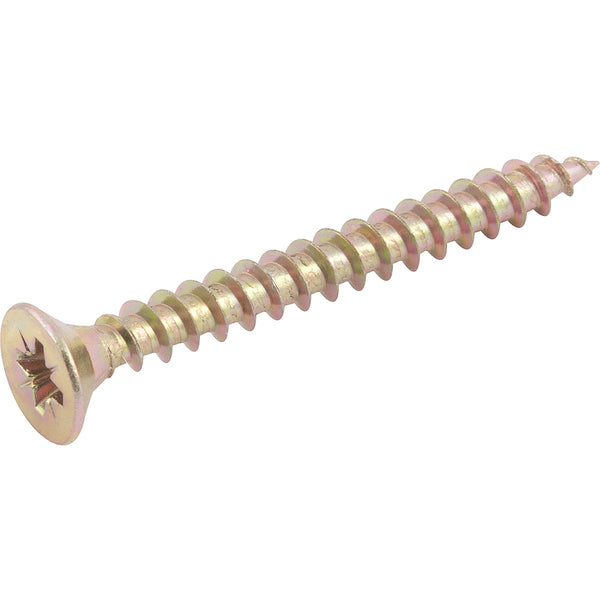Tipo de cabeça do parafuso madeira Chata - fenda cruzada/pozidrive Diâmetro do parafuso madeira: 6,0 mm Comprimento do parafuso madeira: 55,0 mm Material do parafuso madeira: Aço carbono Acabamento do parafuso madeira: Bicromatizado - zincado amarelo